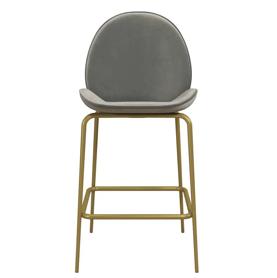 - Dieser zeitlose Barhocker in Hellgrau und Messingfarben ist ein echter Hingucker