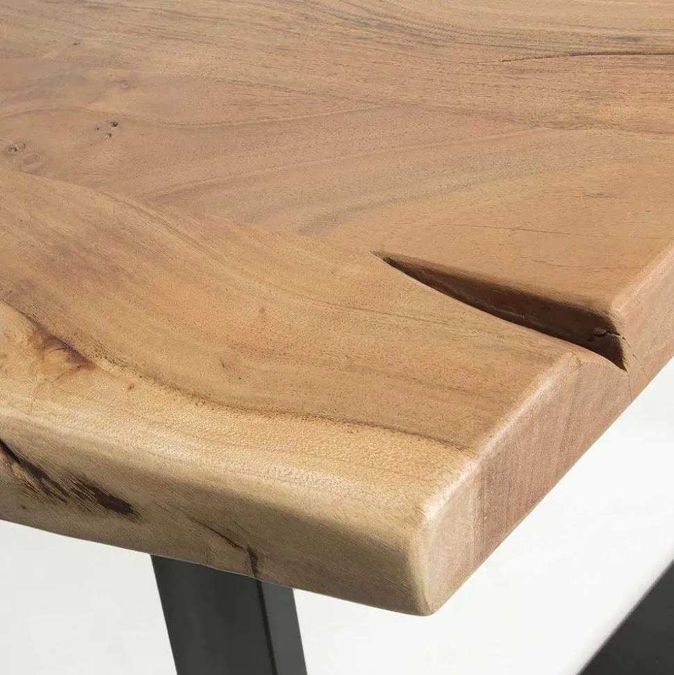 - Robuster Esstisch in Akaziefarben und Schwarz