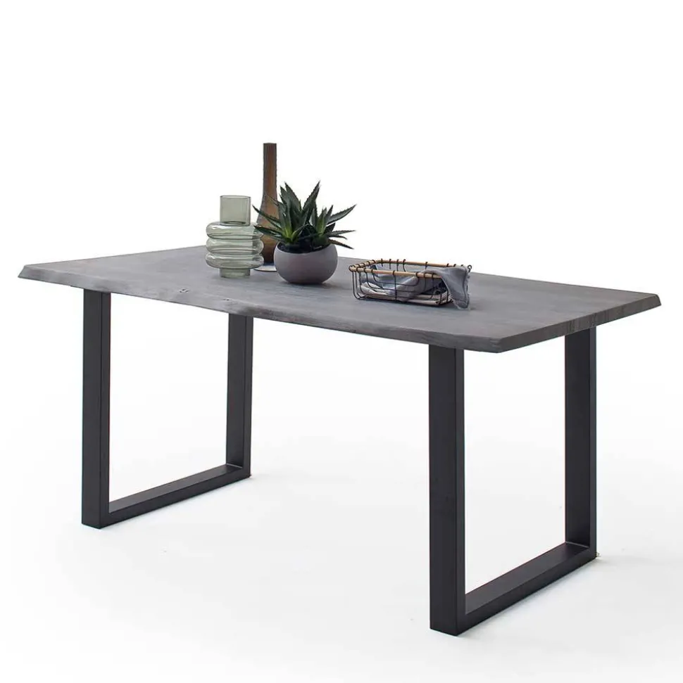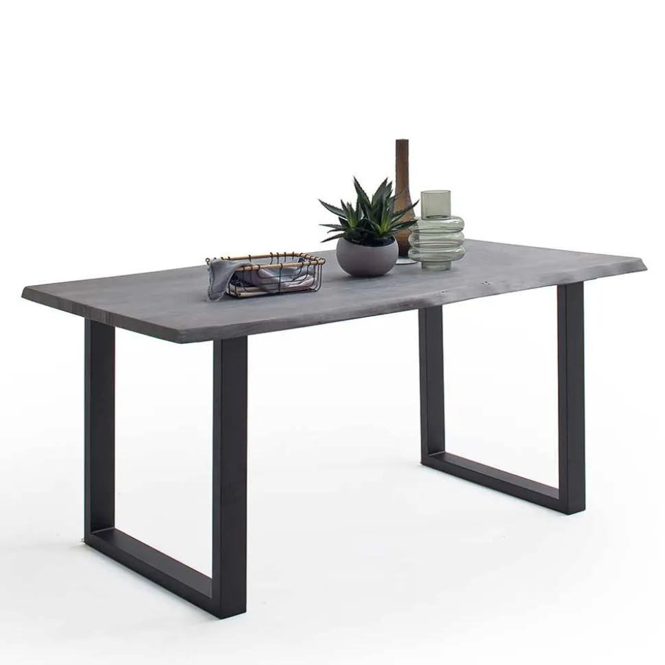 Verleihen Sie Ihrem Essbereich einen Hauch von Natur und Eleganz mit dem Baumkanten Küchentisch „Balanza“. Dieser Tisch vereint stilvolles Design mit natürlicher Schönheit und ist der perfekte Mittelpunkt für moderne Küchen und Esszimmer. Seine charmante Farbgebung in Akazie Grau und das edle Metallgestell machen ihn zu einem echten Hingucker, der sowohl einladend als auch cool wirkt.