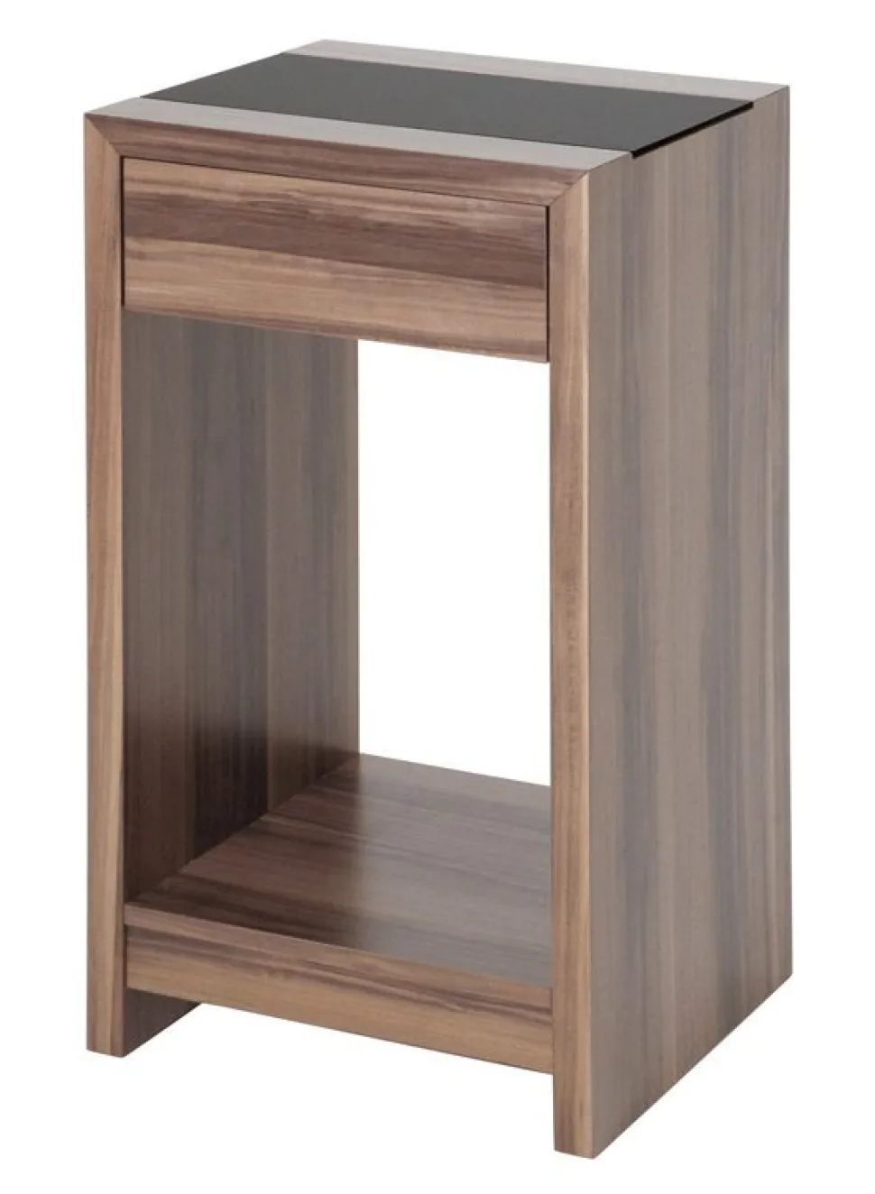 - Korpus aus MDF, Tischplatte teilweise aus Schwarzglas (Sicherheitsglas)