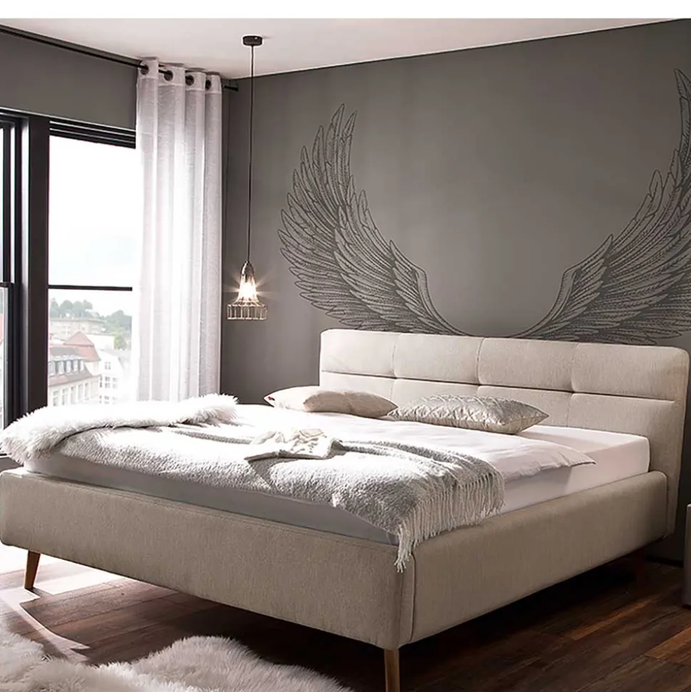 - Harmonisches Polsterbett in Beige und Eichefarben