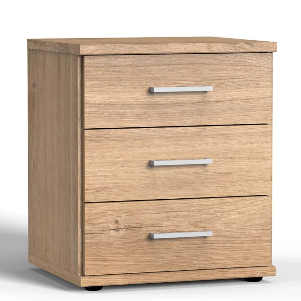 Mit einer Breite von 46 cm, einer Höhe von 58 cm und einer Tiefe von 40 cm bietet die „Osicria“ ausreichend Stauraum für Ihre persönlichen Dinge. Die drei Schubladen mit Metallauszug lassen sich sanft und geräuschlos öffnen und schließen, wodurch Sie mühelos Zugriff auf Ihre Habseligkeiten haben. Die schlanke Griffleiste aus Kunststoff in Chromfarben setzt nicht nur einen stilvollen Akzent, sondern erleichtert auch die Bedienung der Schubladen.