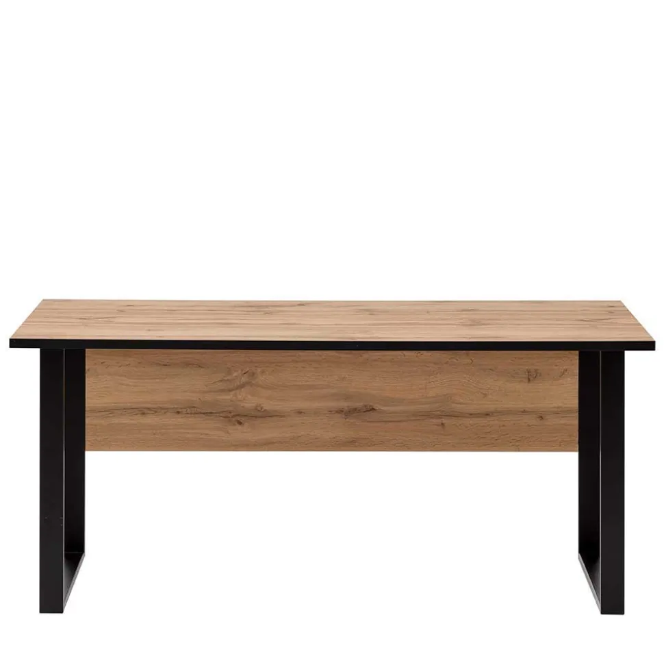 Der Schreibtisch verfügt über eine breite Knieraumblende und wiegt etwa 36 kg. Er ist bis maximal 60 kg belastbar und misst 160 cm in der Breite, 75 cm in der Höhe und 73 cm in der Tiefe.