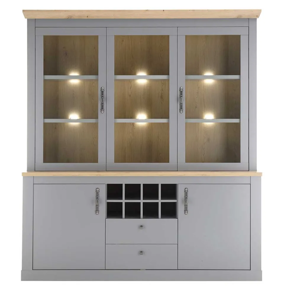 - Imposanter Buffet Schrank in Lichtgrau und Eichefarben