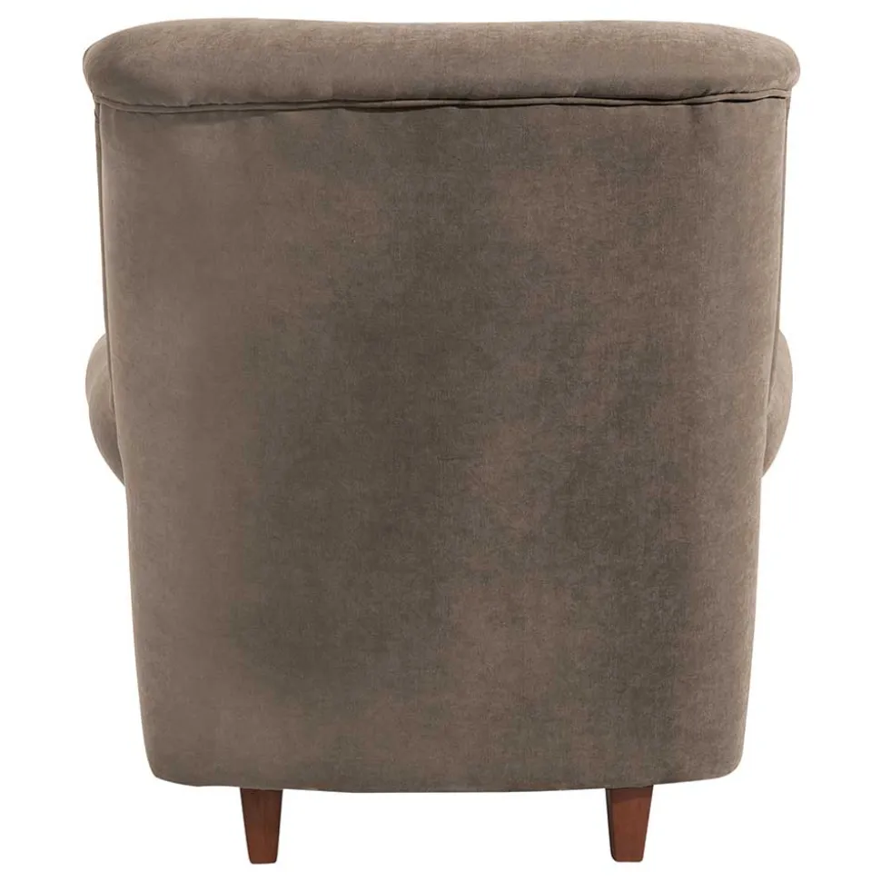 - Gemütlicher Sessel in Beigegrau und Nussbaumfarben