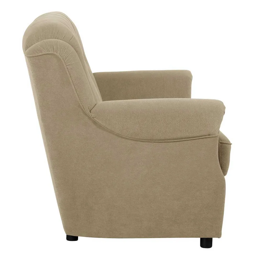 Die Couch-Garnitur „Mabu“ überzeugt mit einer edlen Formsprache, die durch geschmackvolle Zierknöpfe und dekorative Kedernähte kunstvoll in Szene gesetzt wird. Der klassische Stil vereint zeitlose Ästhetik mit einem Hauch von nostalgischem Charme – ideal für anspruchsvolle Wohnräume, in denen Eleganz und Gemütlichkeit gleichermaßen geschätzt werden. Die harmonische Farbgebung in Beige unterstreicht die stilvolle Optik und lässt sich wunderbar mit verschiedenen Einrichtungsstilen kombinieren.