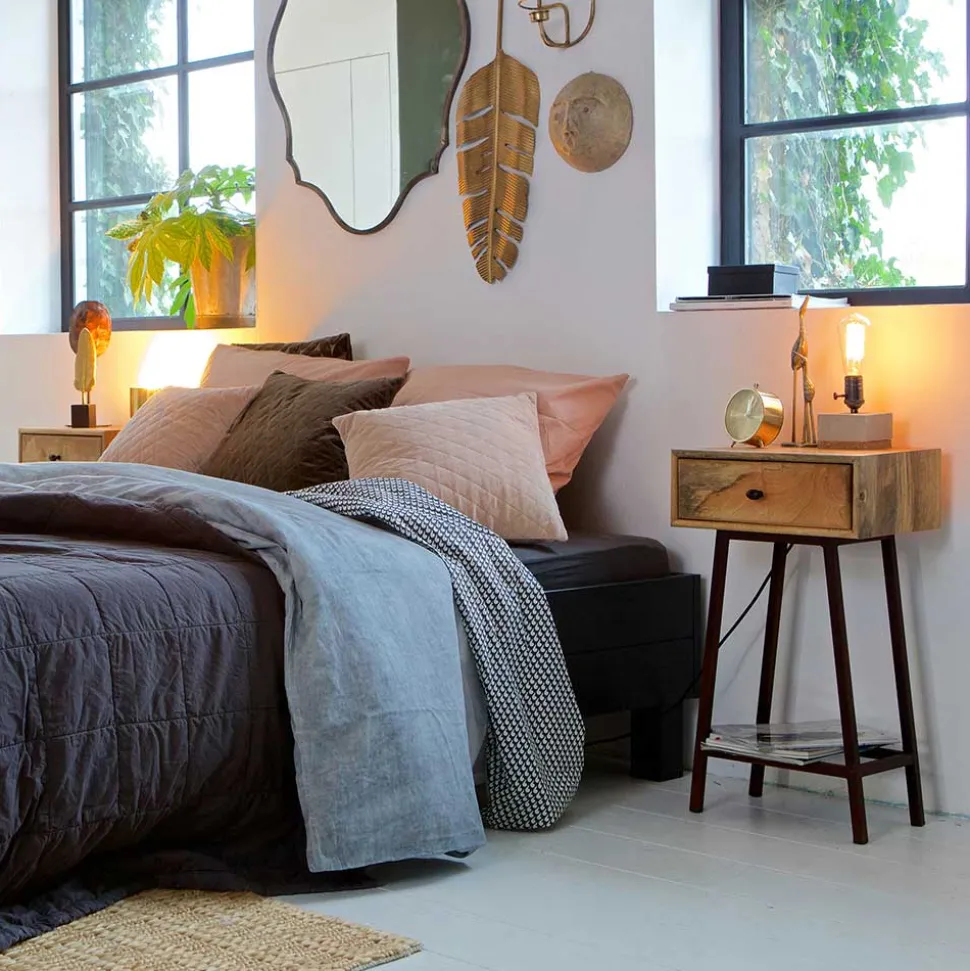 - Gefertigt aus massivem Mangobaumholz und Metall