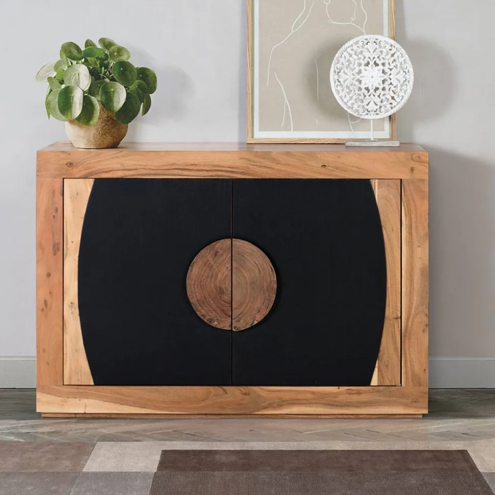 - Eindrucksvolles Sideboard in Schwarz und Akaziefarben