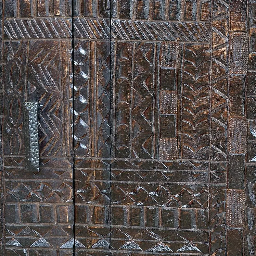 Mit vier eleganten Drehtüren eröffnet Ihnen dieses Sideboard Zugang zu zwei praktischen Einlegeböden, die ausreichend Platz für Geschirr, Bücher oder Dekorationen bieten. Die üppig beschnitzten Türfronten verleihen dem Möbelstück eine besondere Note und machen es zum perfekten Highlight in Ihrem Wohnbereich. Trotz seines stilvollen Designs bleibt die Funktionalität nie auf der Strecke, sodass Sie sowohl Stauraum als auch ästhetischen Genuss erleben.
