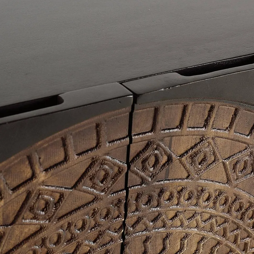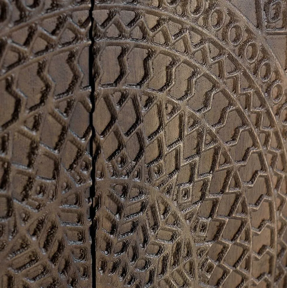 Dieses Sideboard bietet nicht nur eine ansprechende Optik, sondern überzeugt auch funktional. Mit seinen vier Drehtüren und dekorativen Mandala-Motiven auf der Front ist es ein wahres Raumwunder. Hinter den Türen befinden sich zwei Einlegeböden, die reichlich Platz für Ihre Dinge bieten und für Ordnung sorgen. Dank der stabilen Metallscharniere sind die Türen jederzeit leichtgängig zu öffnen. Die eingearbeiteten Griffmulden sorgen für ein elegantes und dennoch praktisches Öffnen der Türen.