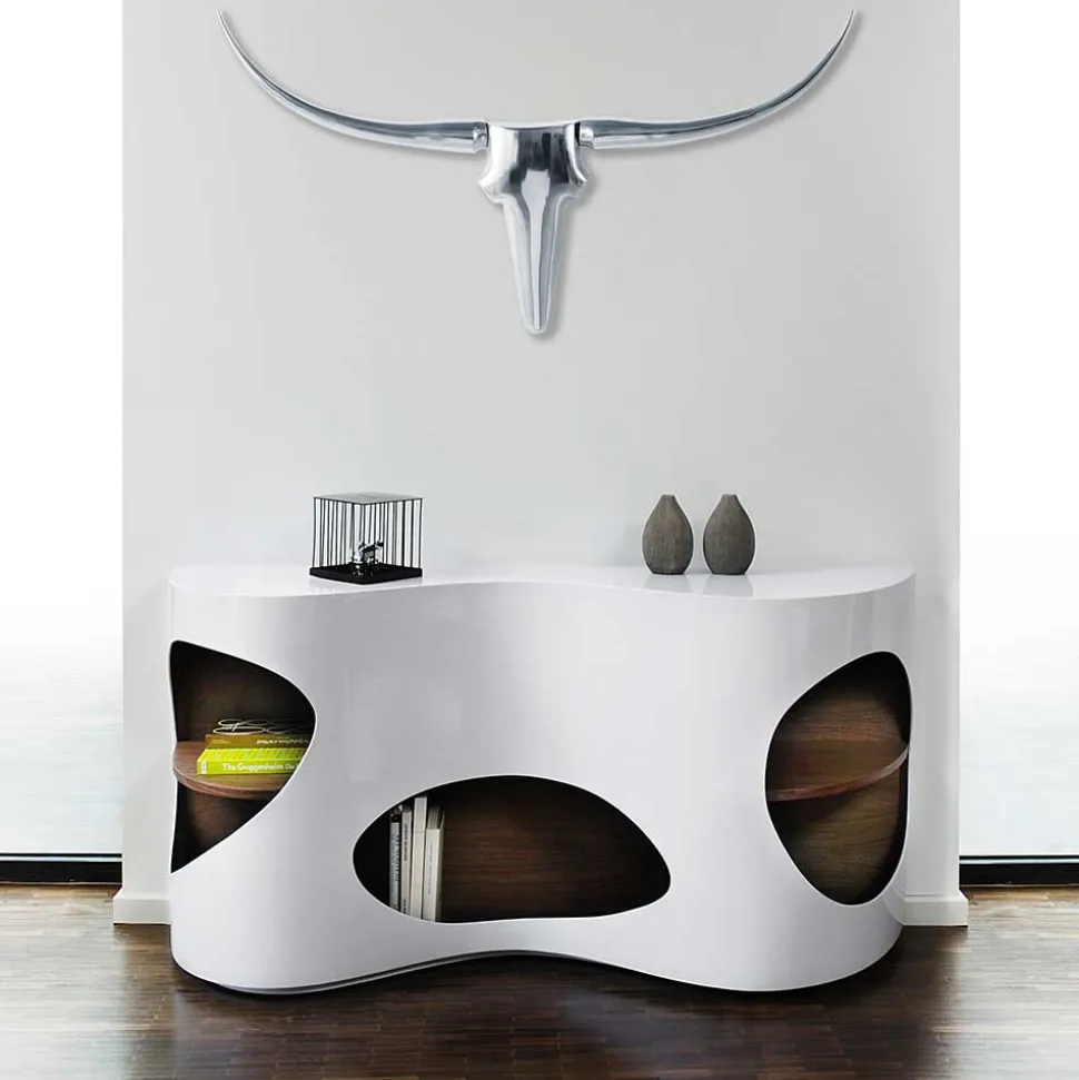 Das „Scarula“ Sideboard zeichnet sich durch seine außergewöhnliche Form mit geschwungener Linienführung aus. Dieses einzigartige Design macht es zu einem wahren Blickfang in jedem Raum und verleiht Ihrer Einrichtung einen modernen Touch.