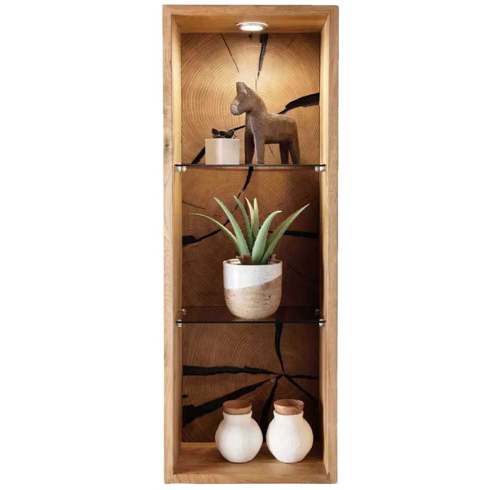 Das Regal „Acapella“ ist komplett aus massiver Wildeiche gefertigt, einem Holz, das für seine Dauerhaftigkeit und seinen edlen Charakter geschätzt wird. Wildeiche bietet eine außergewöhnliche Festigkeit und eine beeindruckende Langlebigkeit, die es ideal für die Herstellung von Möbeln macht, die Generationen überdauern sollen. Die natürliche Maserung der Wildeiche bringt Wärme und Individualität in Ihr Zuhause, wobei jedes Stück durch seine einzigartigen Holzmerkmale zu einem wahren Unikat wird.