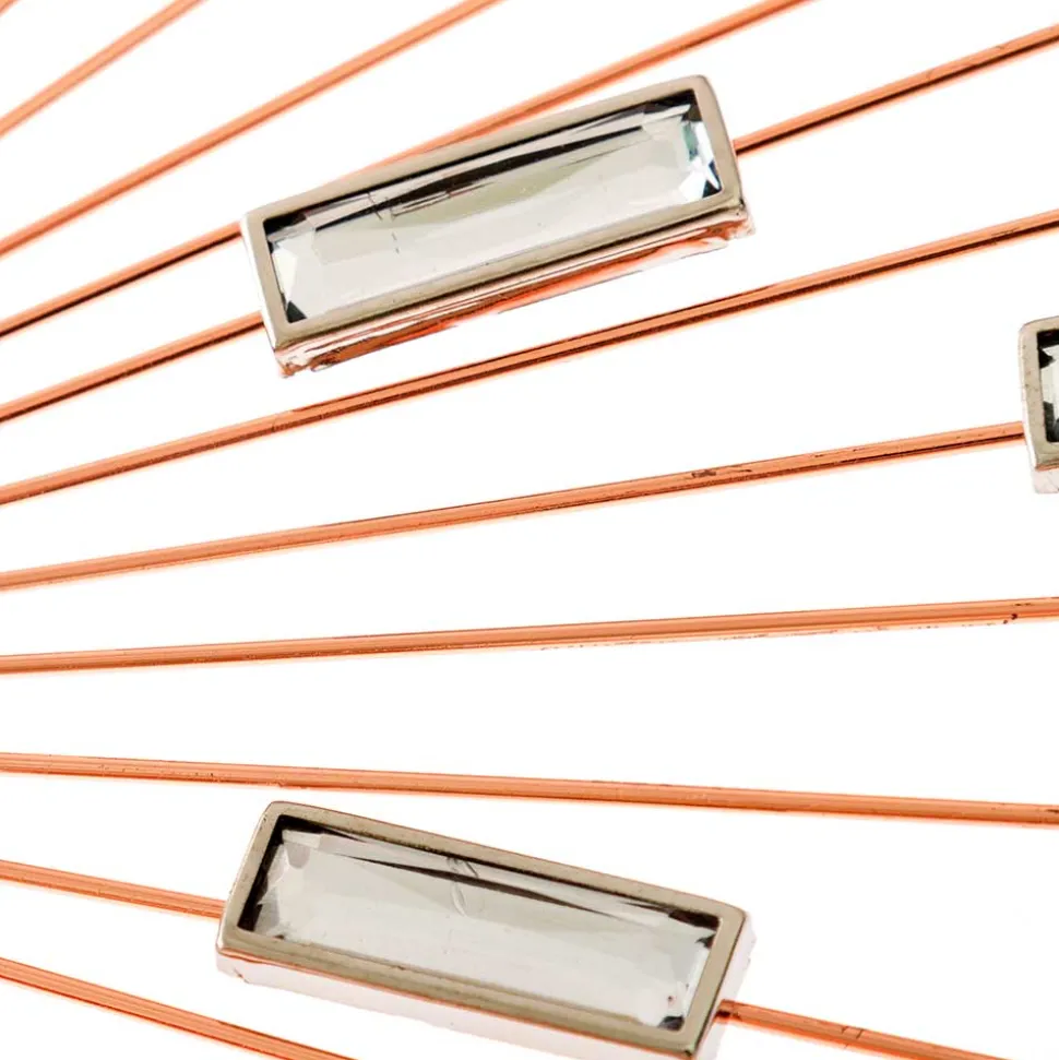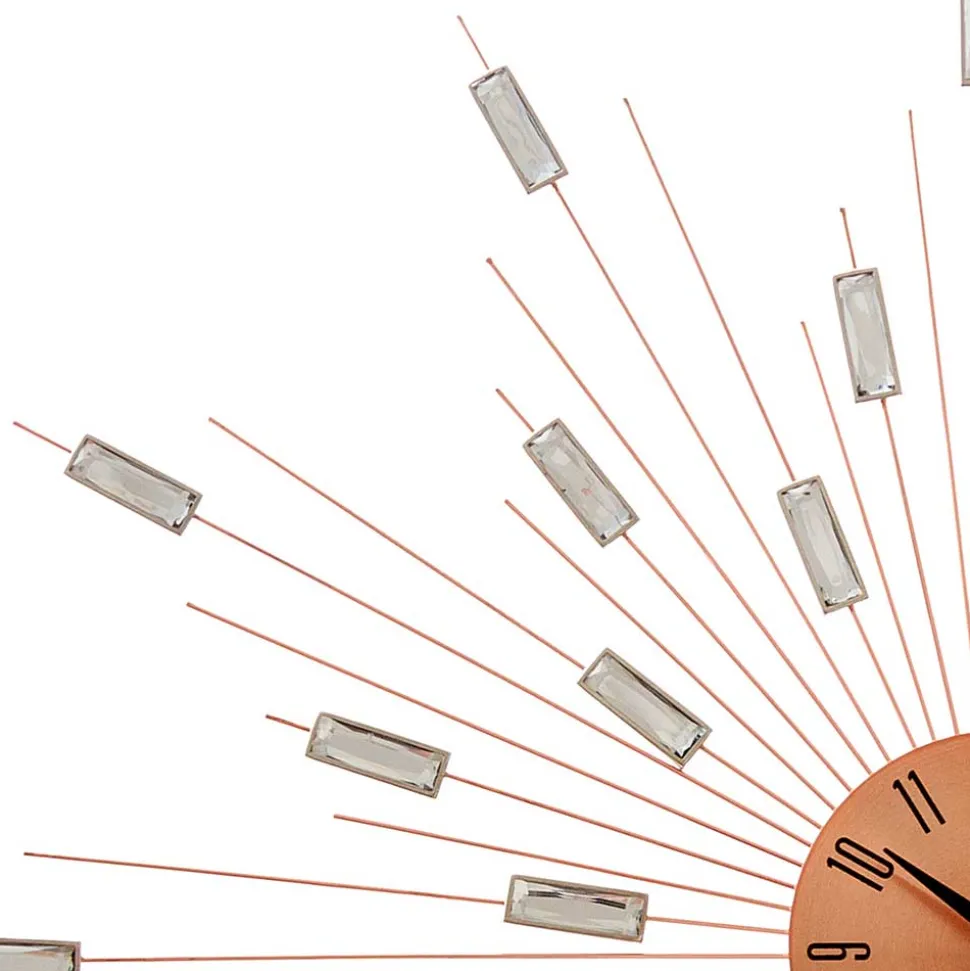 Gefertigt aus Metall und Kunststoff überzeugt die Uhr durch hochwertige Verarbeitung und ein fein ausgearbeitetes Detaildesign. Die Acrylsteine reflektieren das Licht dezent und bringen zusätzliche Lebendigkeit ins Arrangement – besonders effektiv bei direkter Beleuchtung. Die kupferfarbene Oberfläche fügt sich ideal in moderne Einrichtungskonzepte mit Glam-Akzenten oder elegantem Retro-Flair ein.