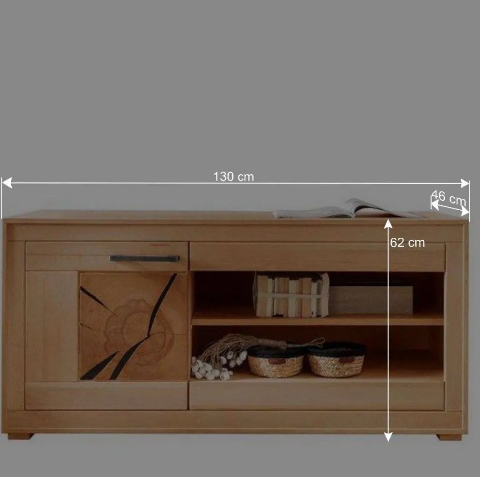 In harmonischer Zusammensetzung vereinen sich zwei Highboards, ein TV Board und ein Wandboard zum beeindruckenden Ganzen. Hergestellt aus massivem Kernbuchenholz, bieten sie nicht nur ästhetische Brillanz, sondern auch Langlebigkeit. Besonders beeindruckend ist dabei die lebendige Maserung der Kernbuche, die durch ihre warmen Farbtöne jeden Raum zum Strahlen bringt.