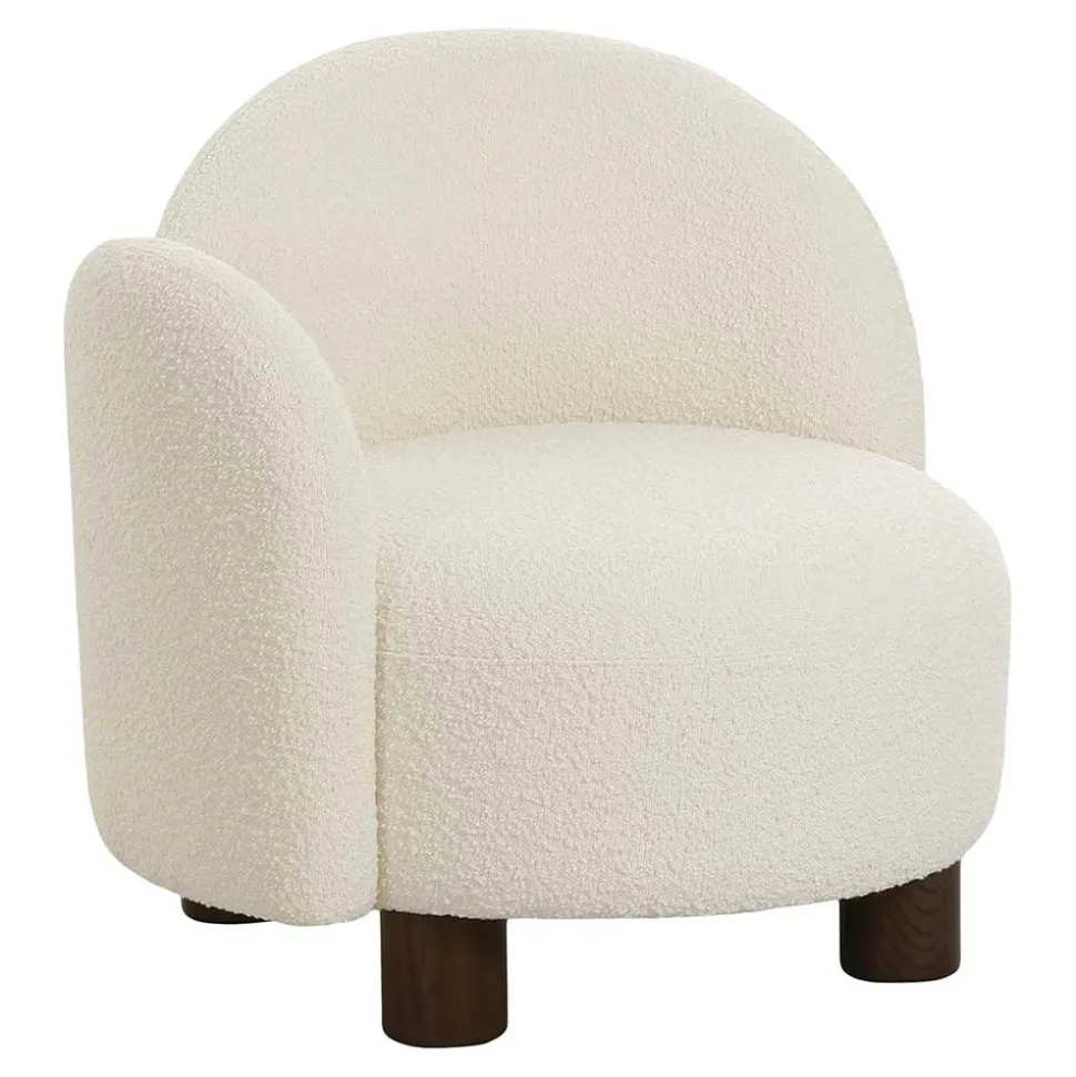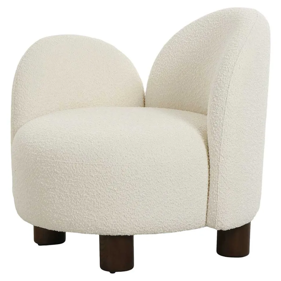 Der Designsessel „Cisterna“ ist aus erstklassigen Materialien gefertigt, die nicht nur durch ihre Optik, sondern auch durch ihre Haptik überzeugen. Der Bezug aus pflegeleichtem Boucle-Stoff (100 % Polyester) bietet eine weiche und angenehme Oberfläche, während die Schaumstoffpolsterung für einen außergewöhnlich hohen Sitzkomfort sorgt. Die Unterkonstruktion besteht aus robustem Holzwerkstoff, und die vier zylindrisch geformten Füße aus dunkelbraun lackiertem Eschenholz garantieren einen stabilen Stand. Die Verwendung von Esche Massivholz für die Füße verleiht dem Sessel zudem eine besondere Langlebigkeit und edle Note.