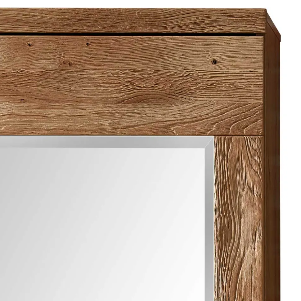 - Wildeiche Massivholz, Spanplatte, Spiegelglas