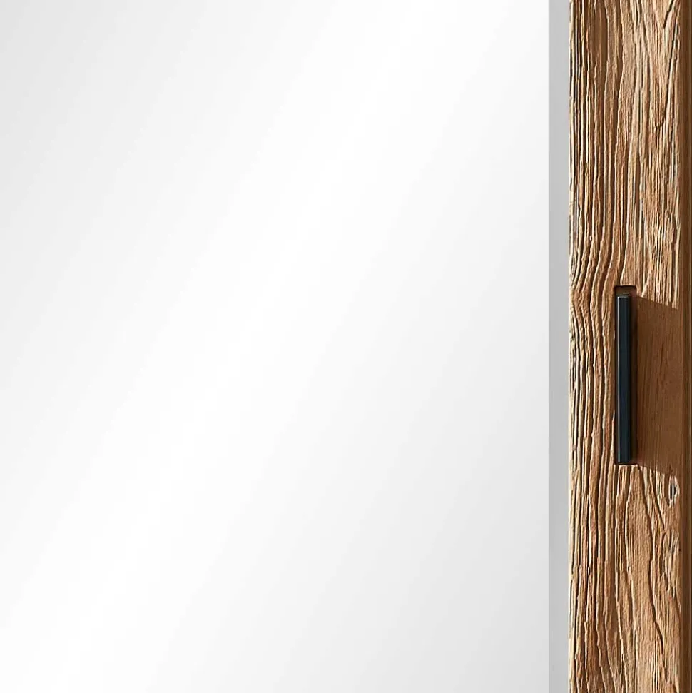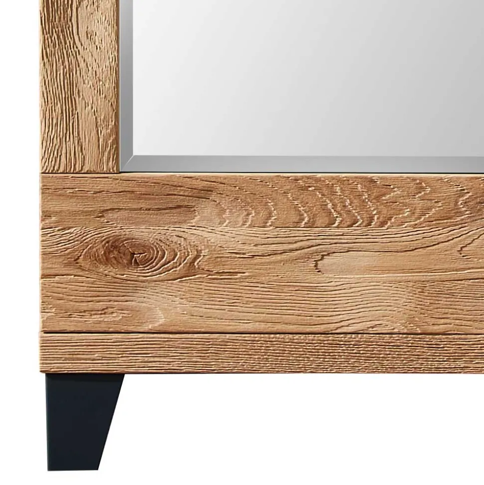 - Hergestellt aus Spiegelglas, Wildeiche Massivholz (Front) und Spanplatte (Korpus)