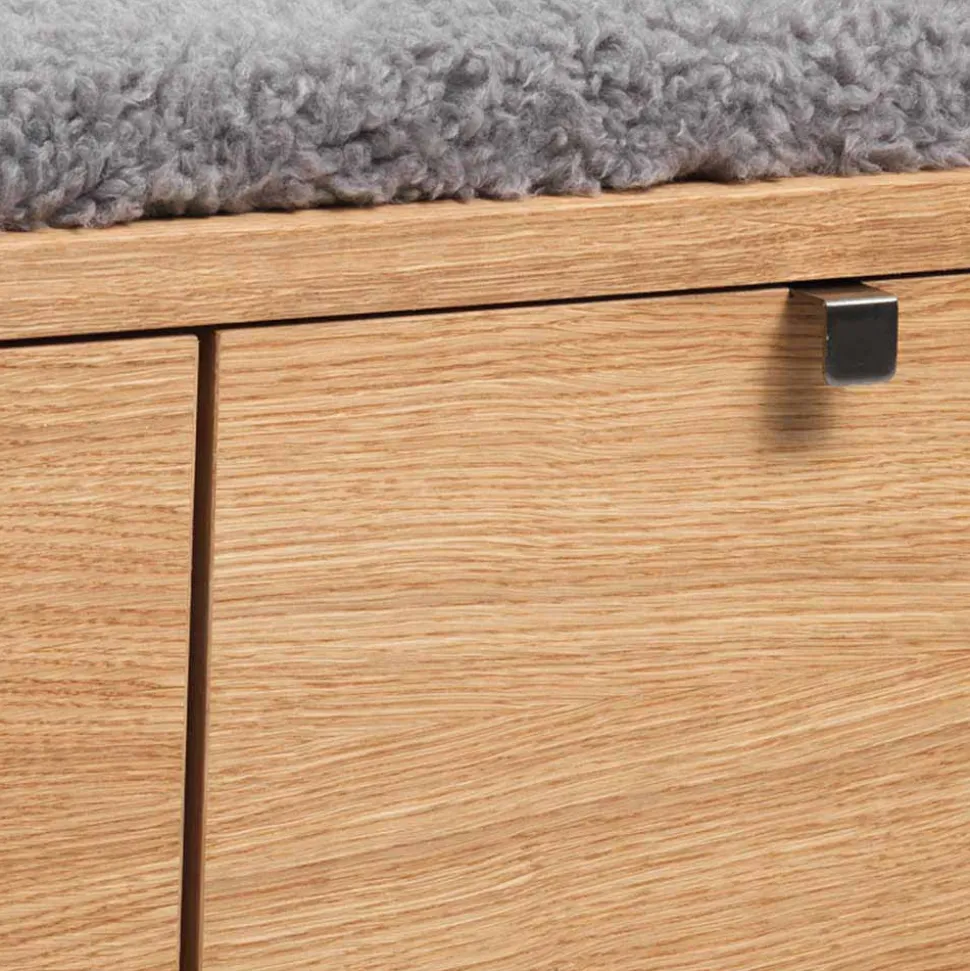 Die Polsterauflage der Garderobenbank „Helvana“ bietet nicht nur eine bequeme Sitzgelegenheit, sondern auch ein unvergleichliches Gefühl von Luxus. Der hochwertige Schaumstoff im Inneren der Polsterung gewährleistet einen optimalen Sitzkomfort, während der weiche Plüschbezug aus 60 % Polyester und 40 % Polyacryl in Grau für ein angenehmes und gemütliches Gefühl sorgt. Diese Materialien sind nicht nur äußerst strapazierfähig, sondern auch leicht zu reinigen, was die Pflege dieser Bank zum Kinderspiel macht.
