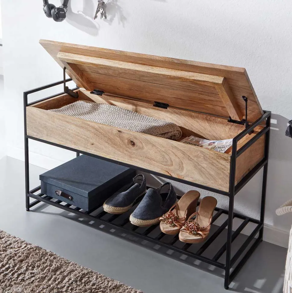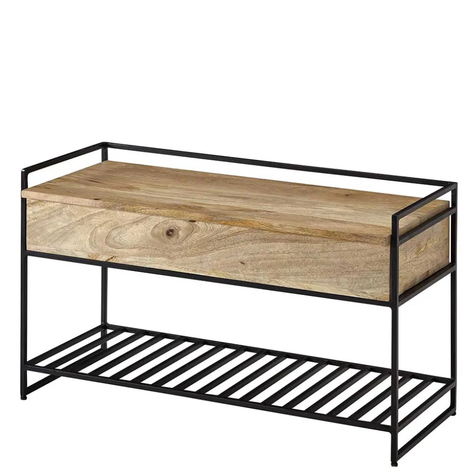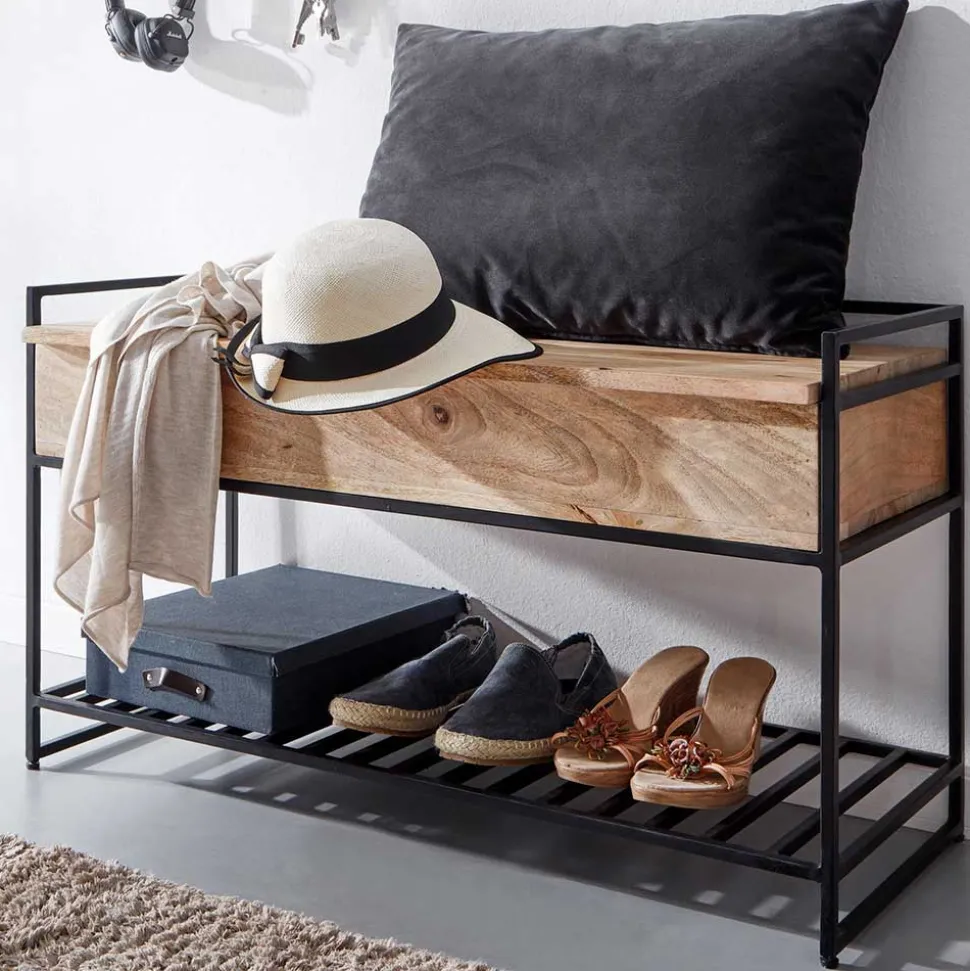 - Attraktive Garderobenbank in Mangoholz Naturfarben und Schwarz