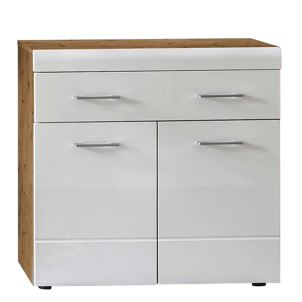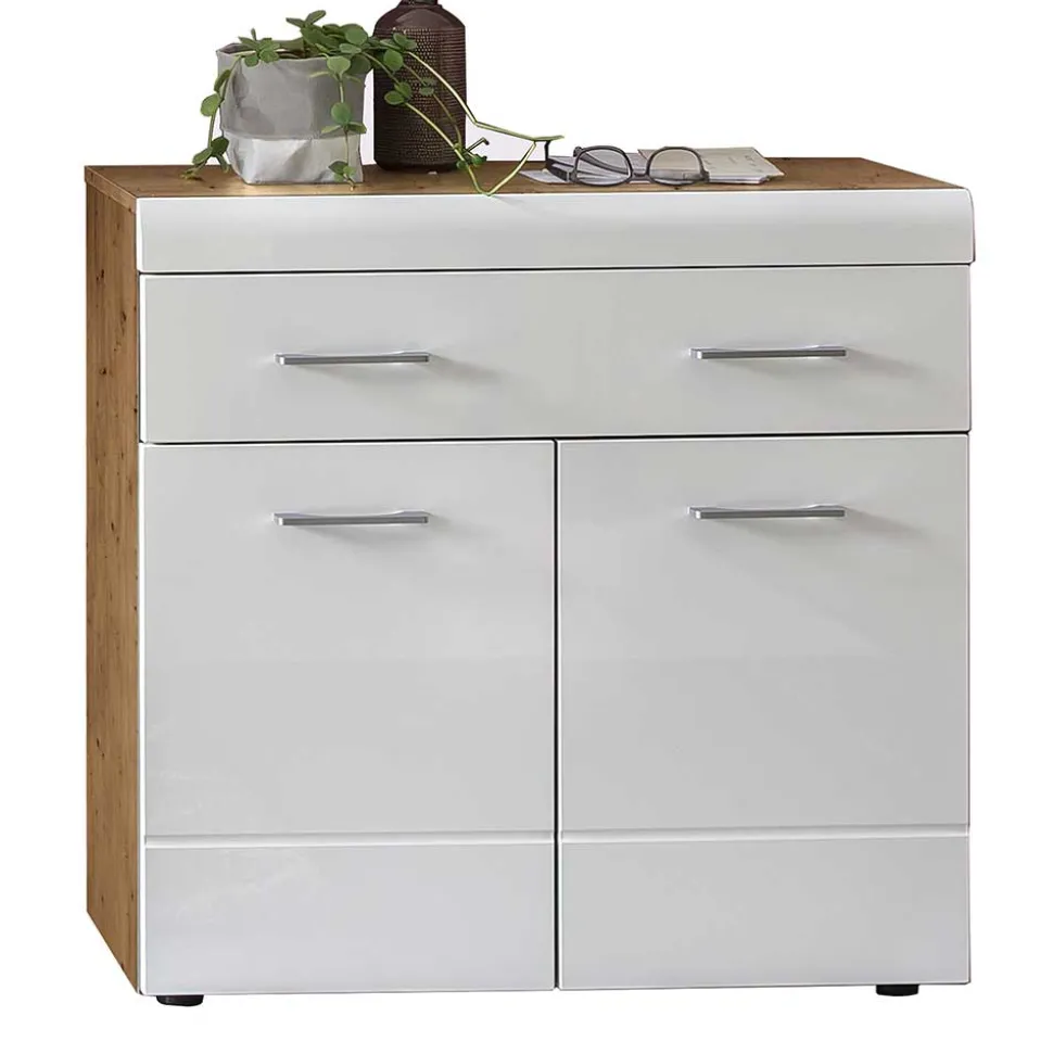 - Kompakte Kommode in Wildeichefarben und Weiß