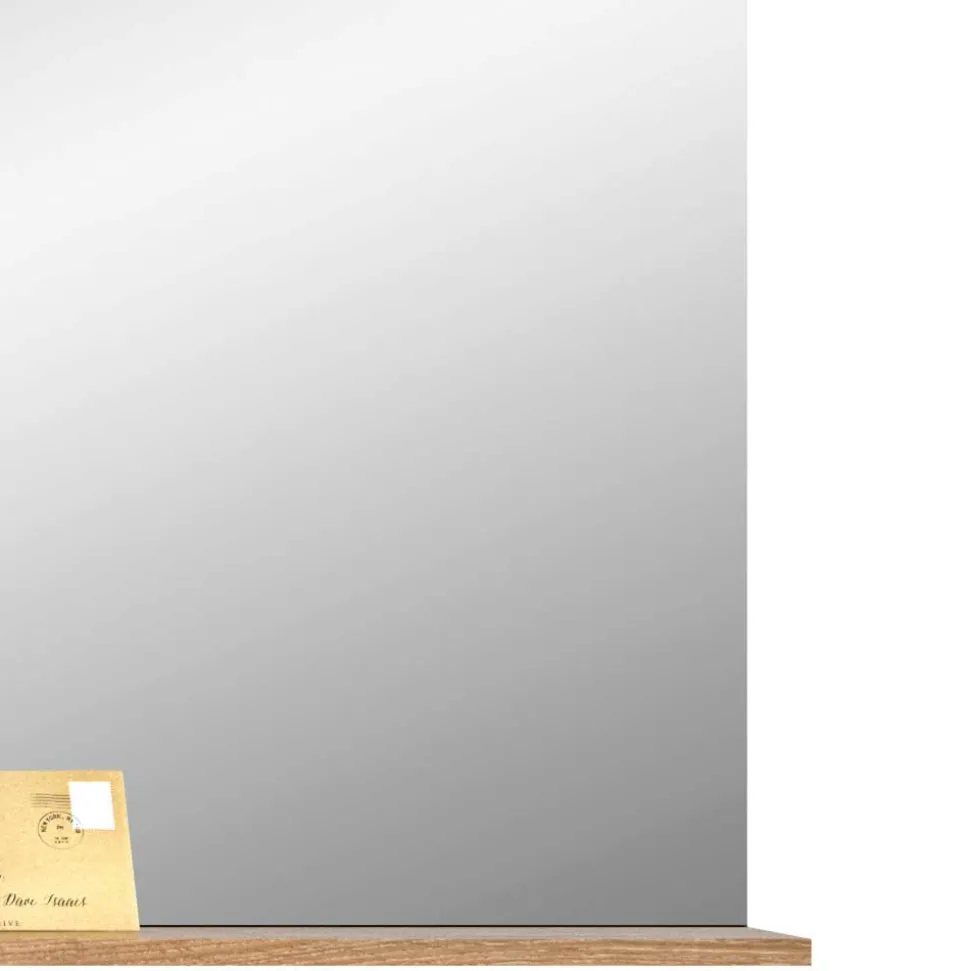 Gefertigt ist der Spiegel aus hochwertiger Spanplatte und erstklassigem Spiegelglas. Die Spanplatten sind mit einer pflegeleichten Beschichtung versehen, die nicht nur vor Abnutzung schützt, sondern sich auch im Alltag einfach reinigen lässt. Besonders praktisch: Die Oberflächen sind widerstandsfähig gegen Kratzer und Schmutz und behalten dauerhaft ihre makellose Optik. Die Ablage in warmer Wildeichefarbe bildet einen harmonischen Kontrast zum kühlen Spiegelglas und bietet eine zusätzliche Ablagemöglichkeit für Schlüssel, Sonnenbrillen oder dekorative Elemente.