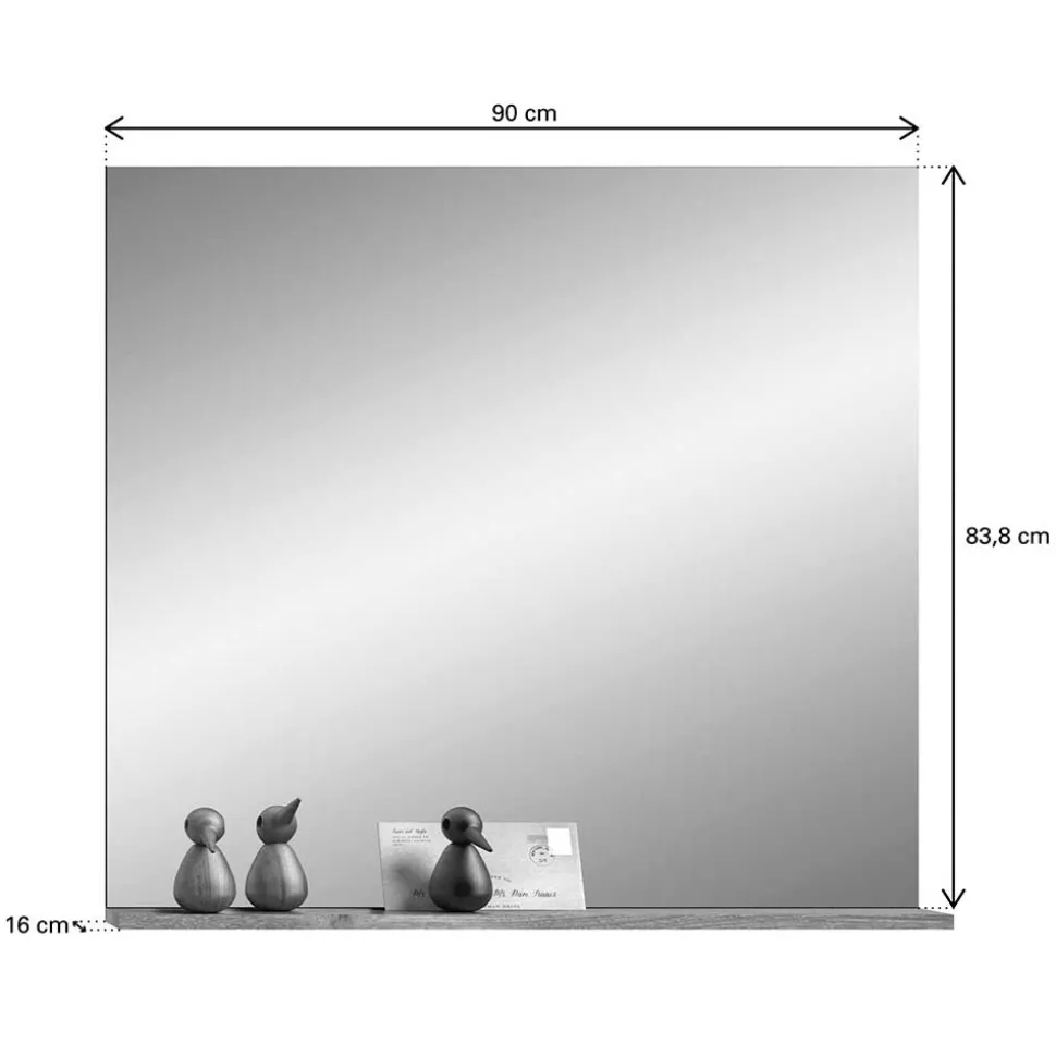 Dank der kompakten Maße von 90 cm Breite, 84 cm Höhe und 16 cm Tiefe fügt sich dieser Spiegel mühelos auch in kleinere Flure oder Dielen ein. Die rahmenlose Gestaltung lässt ihn besonders leicht und modern wirken. Die Ablagefläche in Holzoptik ist bis zu 3 kg belastbar – ideal für alltägliche Utensilien. Als praktischer Wandspiegel konzipiert, wird „Depart“ platzsparend an der Wand montiert. Die Montage gelingt im Handumdrehen, eine detaillierte Anleitung liegt selbstverständlich bei.