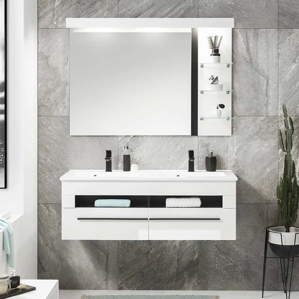 - Gefertigt aus MDF (Front), Spiegelglas und Spanplatte (Korpus)