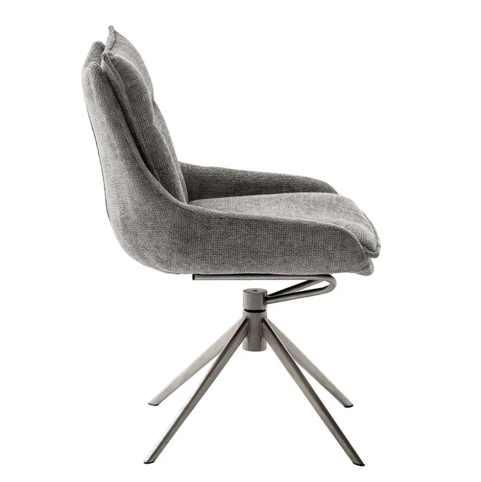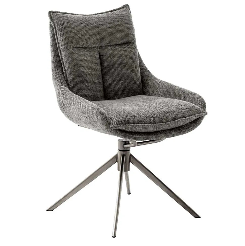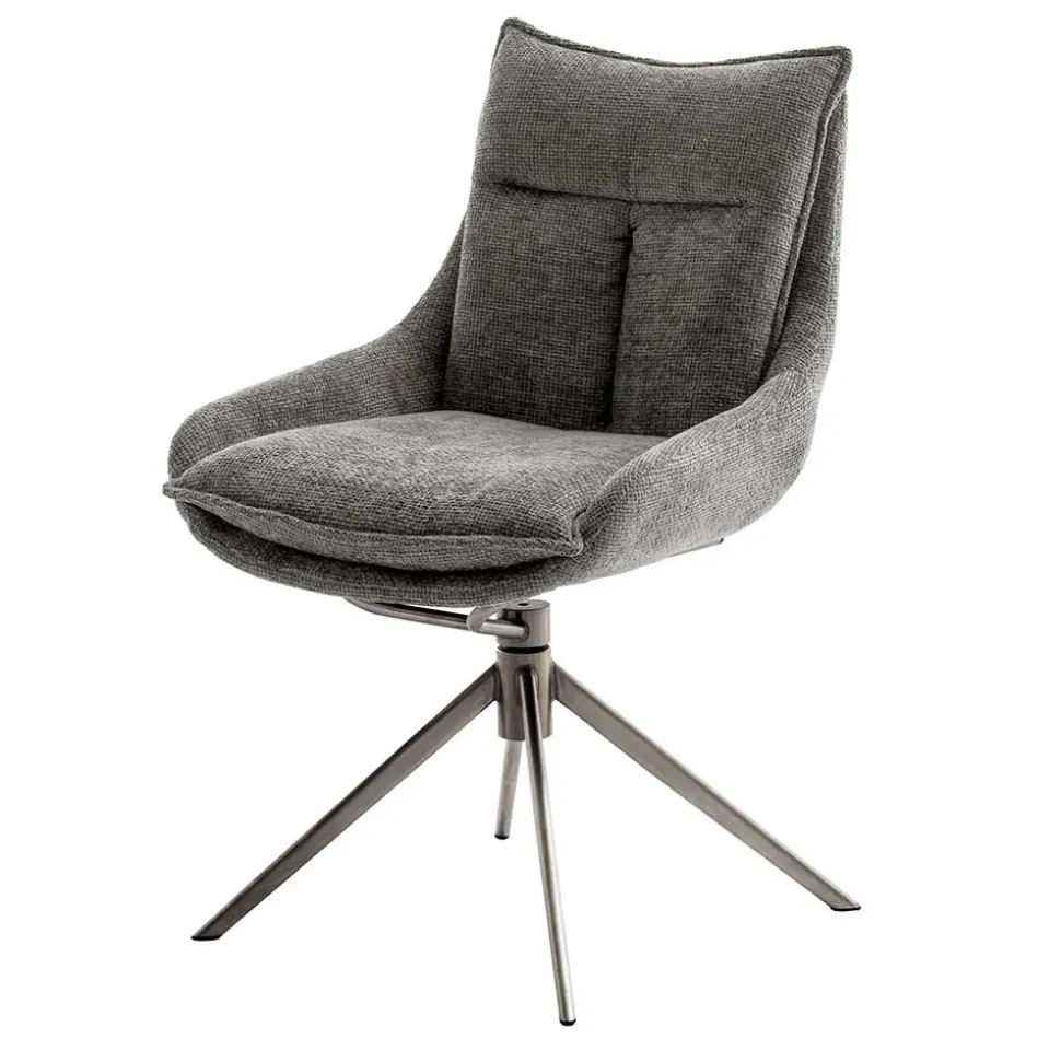 Das gebürstete Edelstahlgestell mit seinen konisch zulaufenden Beinen verleiht dem „Faviconda“ nicht nur einen modernen Look, sondern bietet auch Stabilität und Langlebigkeit. Der Schwingeffekt der Beine sorgt für ein leicht federndes Sitzgefühl, das zusätzlichen Komfort bietet. Besonders praktisch ist die 360-Grad-Drehfunktion, die Ihnen maximale Bewegungsfreiheit ermöglicht. Dank der integrierten Nivellierung bleibt der Stuhl auch auf unebenen Böden stabil und sicher.