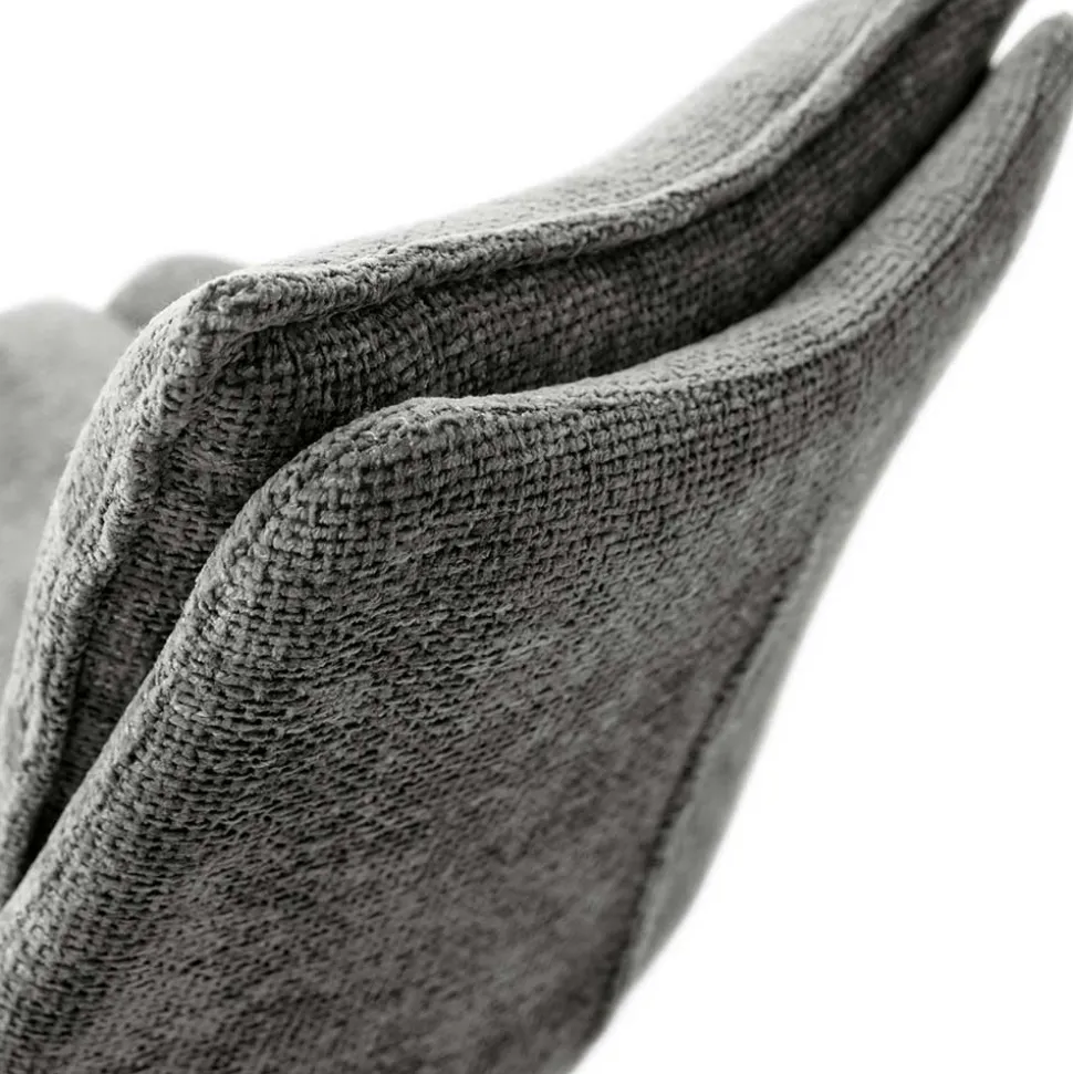 Der anthrazitfarbene Strukturstoff aus 100 % Polyester ist nicht nur optisch ansprechend, sondern auch besonders pflegeleicht. Das Material fühlt sich weich an und ist dennoch strapazierfähig, wodurch der Stuhl auch bei häufiger Nutzung seine Schönheit behält. Ein umlaufender Keder an Sitz- und Rückenfläche setzt stilvolle Akzente und verstärkt die Langlebigkeit des Stuhls.