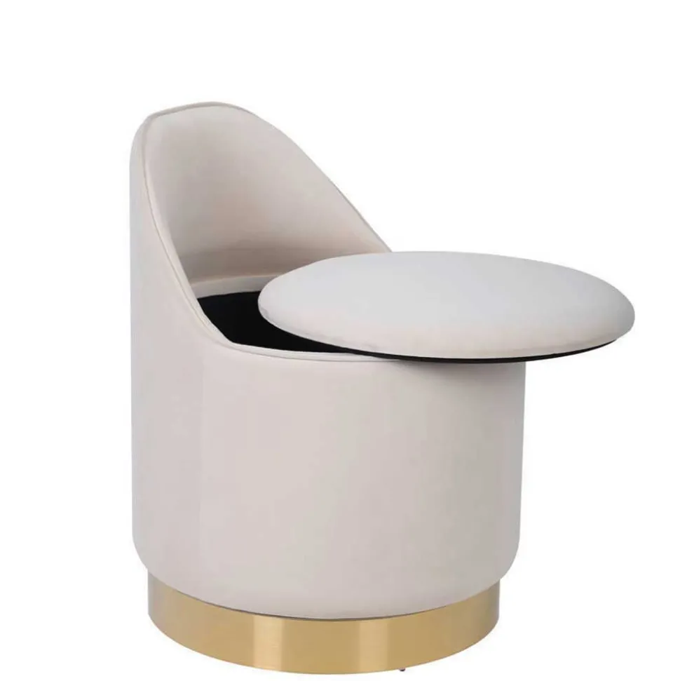 - Eleganter Hocker in Cremeweiß und Goldfarben