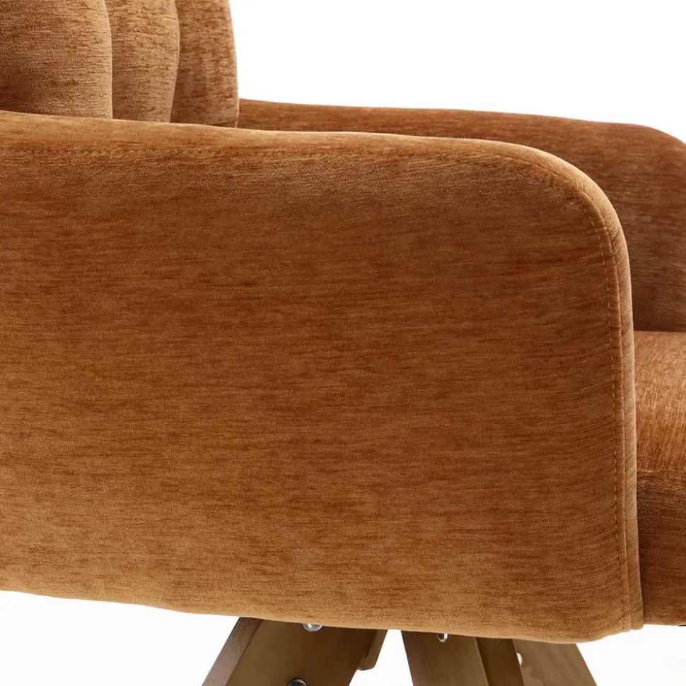 Mit einer hohen Rückenlehne in Kissenoptik und Armlehnen, die eine Höhe von 66 cm aufweisen, bietet der „Manu“ bestmöglichen Halt. Seine stabilen Massivholzbeine aus Buche in Eichenholzfarbe gewährleisten Sicherheit und Stabilität. Mit kompakten Maßen von 60 cm Breite, 93 cm Höhe und 67 cm Tiefe ist dieser Stuhl auch ideal für kleinere Räume geeignet und bietet zudem eine praktische 180-Grad-Drehfunktion.