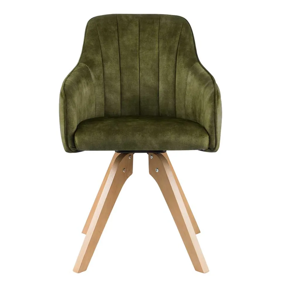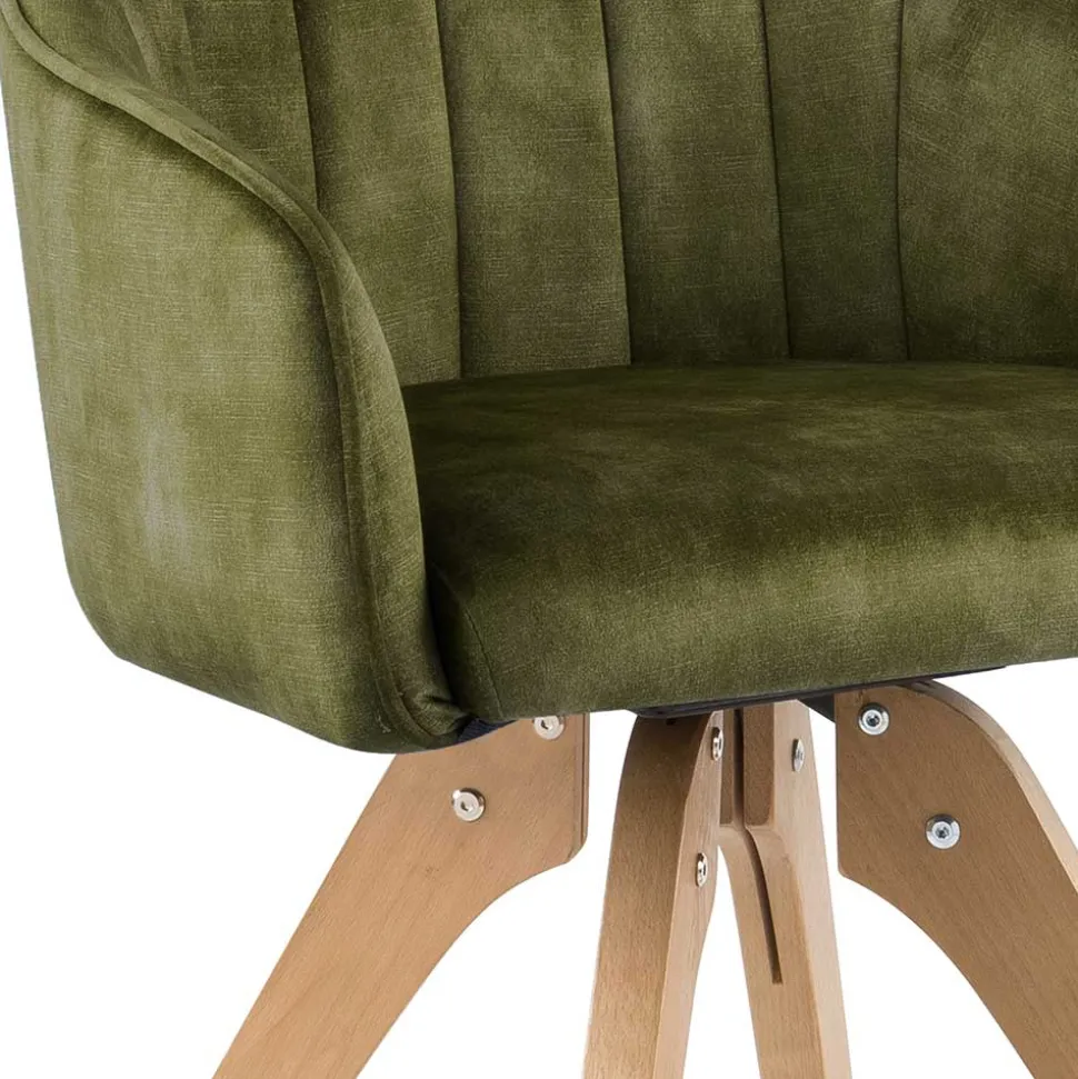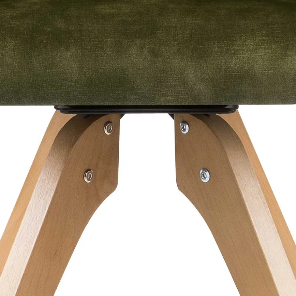 Jeder „Quintessa“ Stuhl wird aus Materialien höchster Qualität gefertigt. Die Kombination aus langlebigem Veloursbezug und robustem Buchenholzgestell gewährleistet, dass dieser Stuhl nicht nur schön aussieht, sondern auch den Ansprüchen des täglichen Gebrauchs mühelos standhält. Der in Vintage-Optik gehaltene olivgrüne Veloursstoff (100% Polyester) ist nicht nur ein optischer Hingucker, sondern auch besonders pflegeleicht und strapazierfähig.
