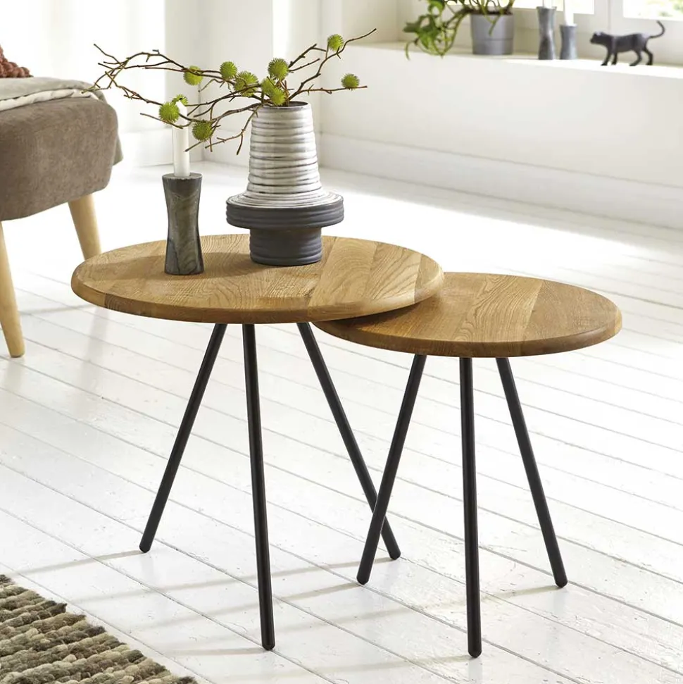 - Schlichter Beistelltisch in Eichefarben und Schwarz