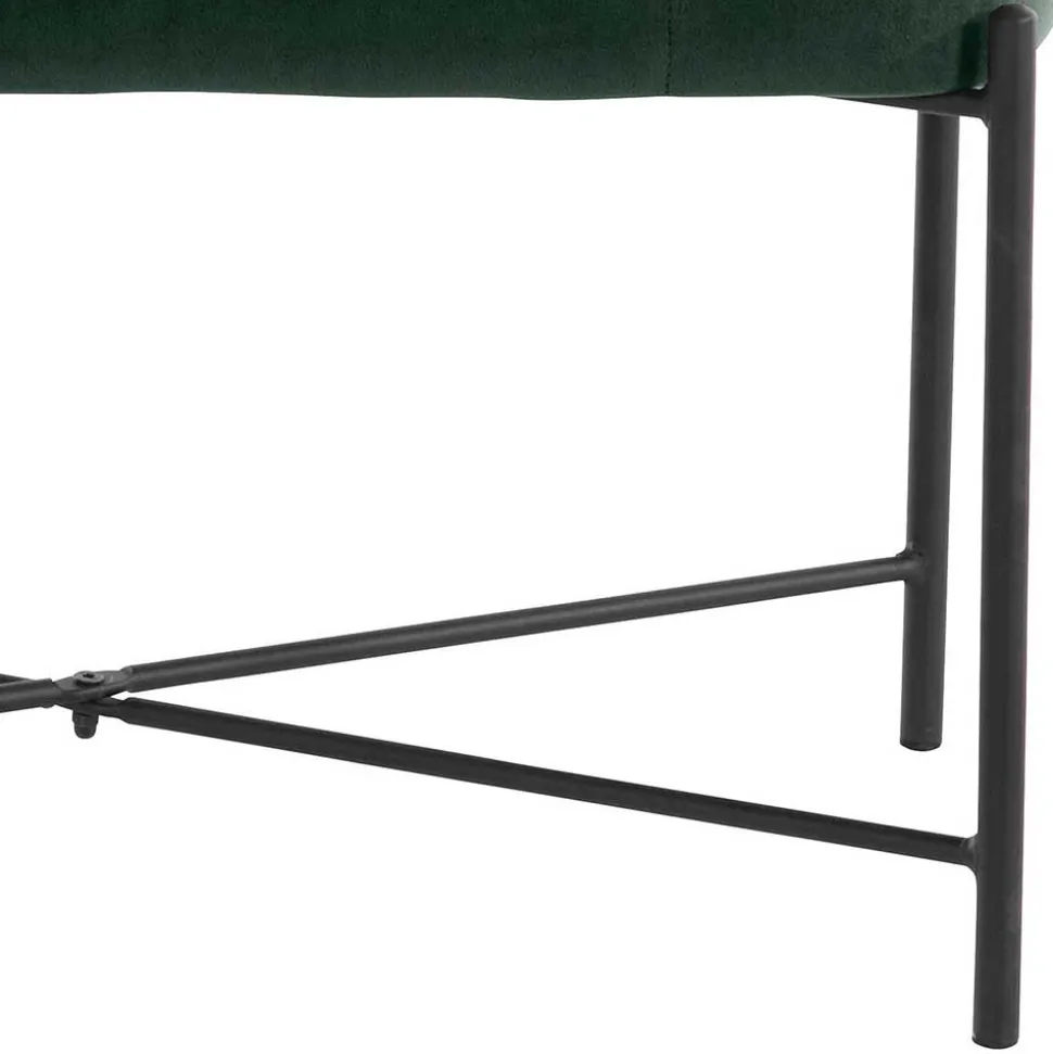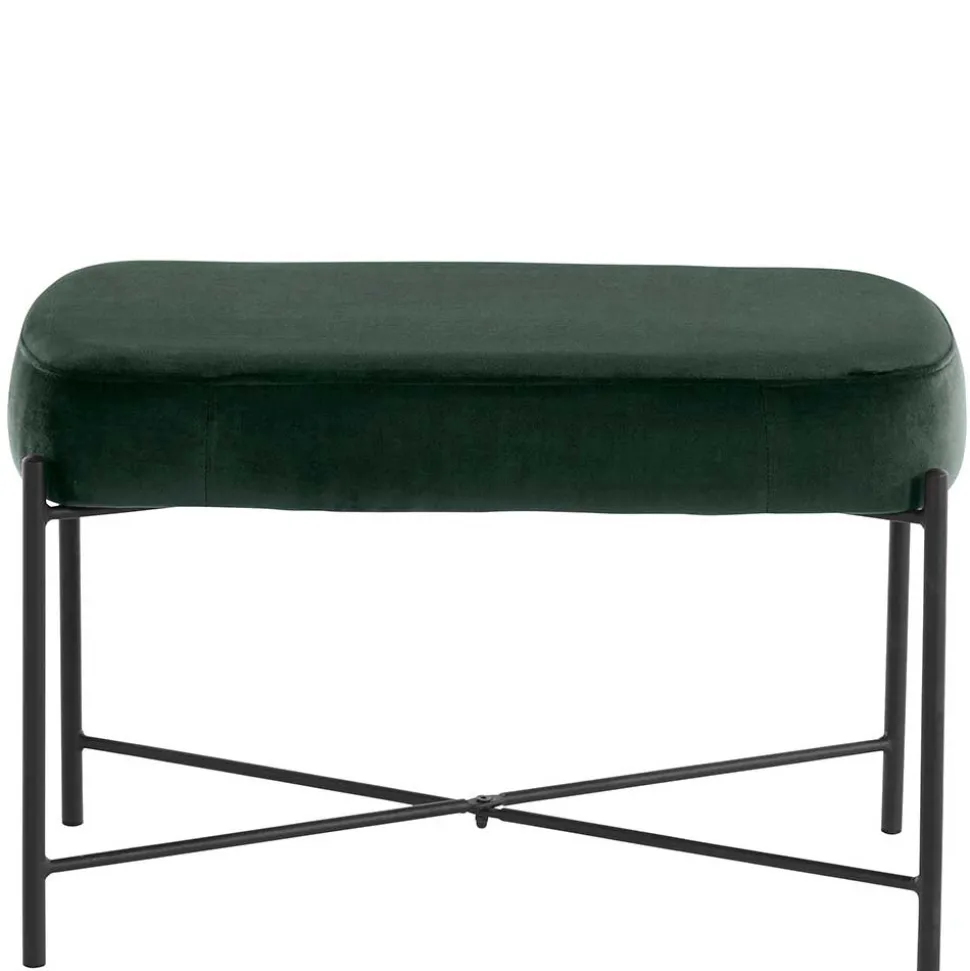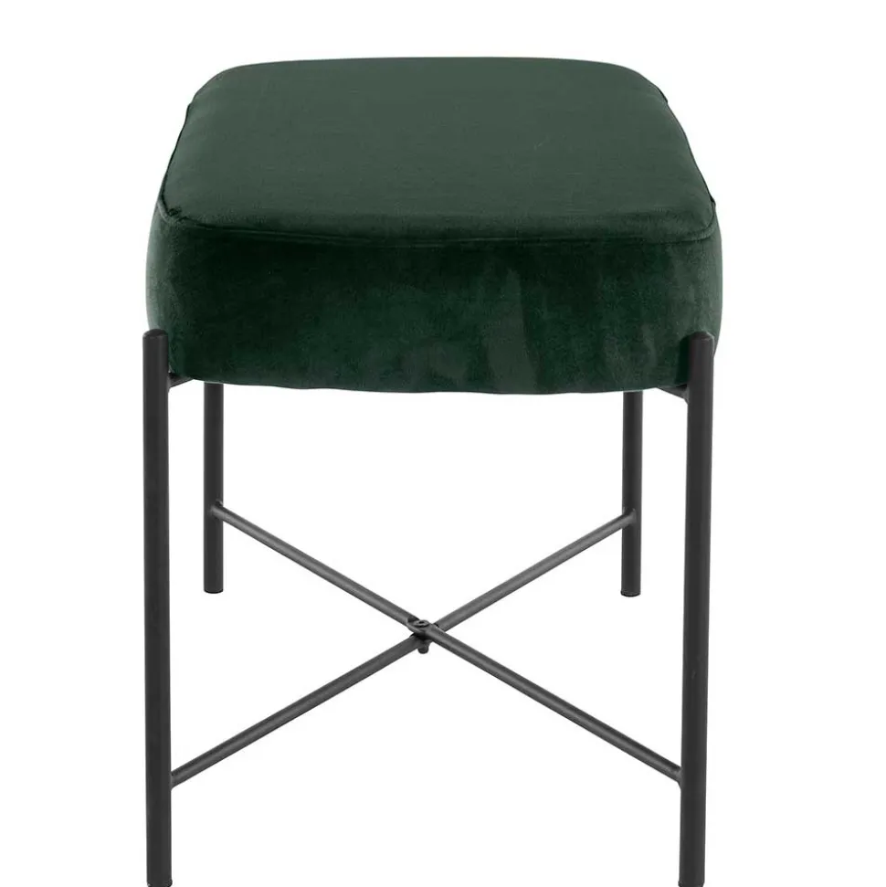 Verarbeitet wurde ein strapazierfähiger Samtbezug aus 100 % Polyester – ein Material, das nicht nur durch seine edle Haptik begeistert, sondern auch besonders pflegeleicht und langlebig ist. Samt reflektiert das Licht auf eine angenehme, wohnliche Weise und verleiht der Polsterbank je nach Lichteinfall unterschiedliche Nuancen in Dunkelgrün. Die komfortable Schaumstoffpolsterung sorgt für ein angenehmes Sitzgefühl, sei es beim Anziehen der Schuhe im Flur, beim kurzen Verschnaufen im Schlafzimmer oder als stilvoller Hocker im Wohnzimmer.