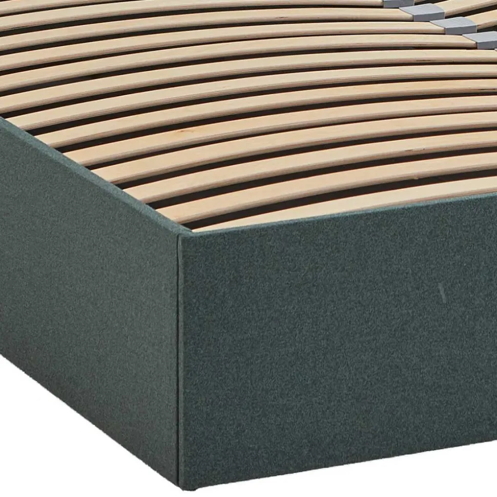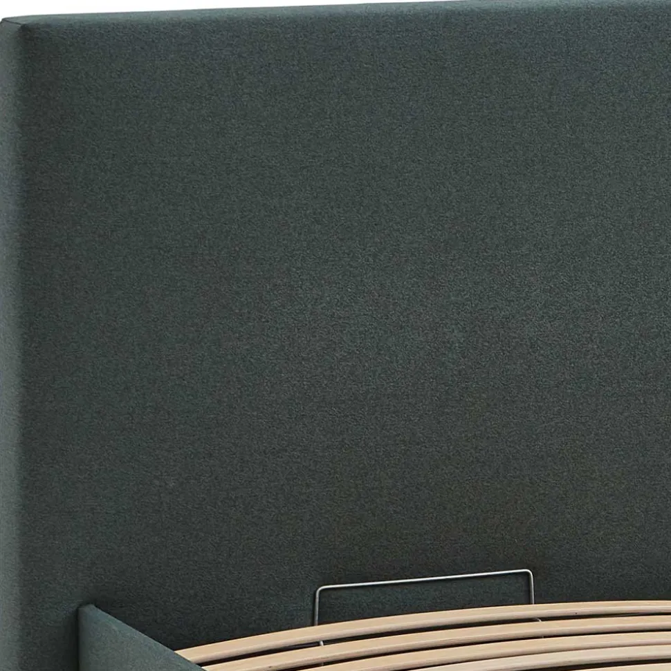 Der Bezug des Bettes besteht zu 100 % aus strapazierfähigem Polyester und beeindruckt durch seine feine Melierung. Dieser hochwertige Webstoff in Dunkelgrün ist nicht nur besonders langlebig, sondern auch äußerst pflegeleicht. Schmutz und Staub haben dank der pflegeleichten Oberfläche kaum eine Chance – einfach abwischen, und das Bett sieht aus wie neu. So bleibt der edle Look des Bettes lange erhalten, ohne dass Sie viel Aufwand in die Pflege investieren müssen.