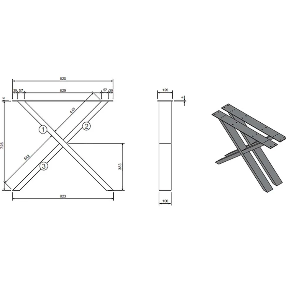 - Massives X-Fußgestell, Maße: BxHxT: Jeweils 82,3×72,6×10 cm