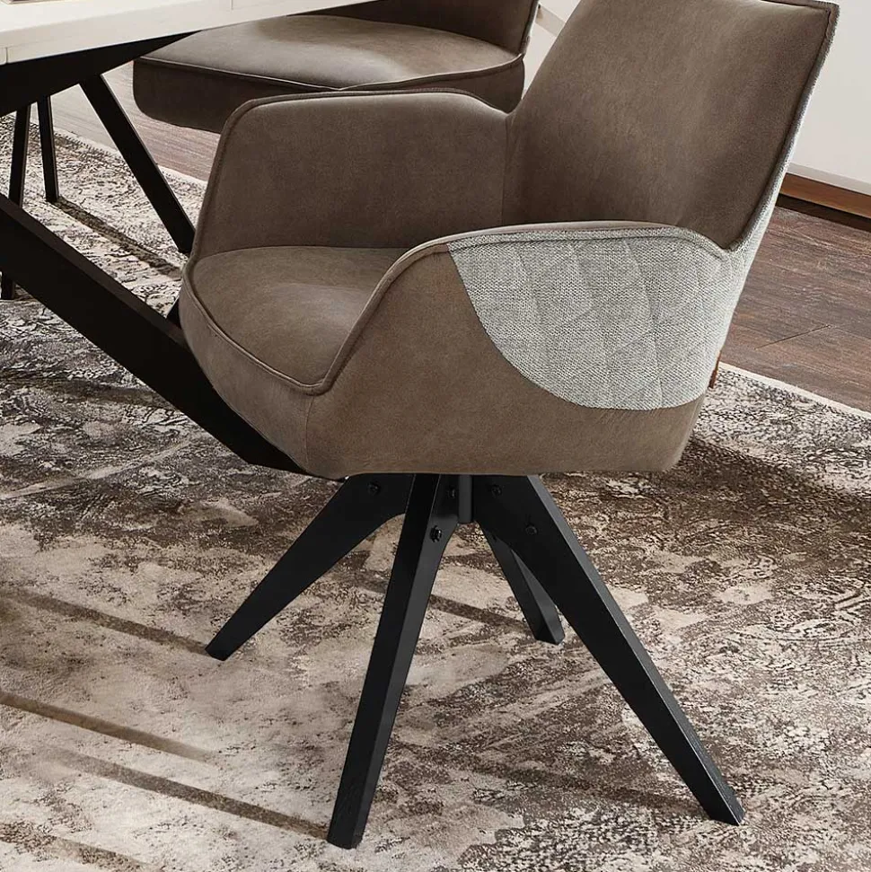 Die Bezüge der Stühle sind aus zwei verschiedenen Materialien gefertigt: braune Microfaser im Vintage-Style (100 % Polyester) und grauer Webstoff (94 % Polyester, 6 % Nylon). Beide Materialien sind nicht nur äußerst strapazierfähig und pflegeleicht, sondern verleihen den Stühlen auch eine edle Optik. Die aufwändige umlaufende Kederverarbeitung und die dekorative Rautensteppung auf den Außenseiten der Rückenlehnen unterstreichen die hochwertige Verarbeitung und das stilvolle Design der Stühle.