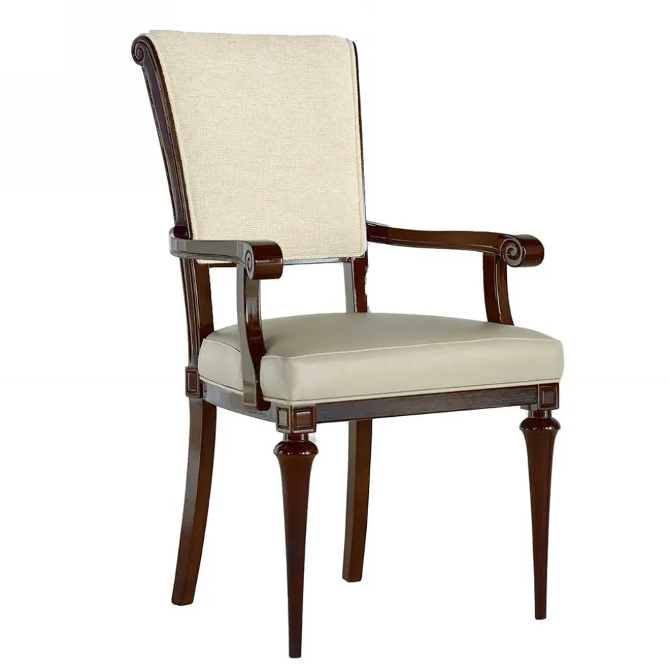 Eleganz in Beige und Dunkelbraun: Der „Crenada“ Armlehnenstuhl