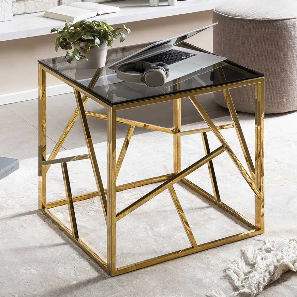 - Edler Couchtisch in Goldfarben und Grau transparent