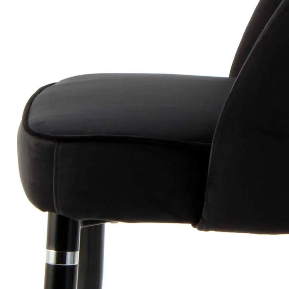 Ein Highlight dieses Designstuhls ist sein edler Samtbezug in tiefem Schwarz. Samt bringt nicht nur einen Hauch von Luxus in deinen Wohnraum, sondern fühlt sich auch unglaublich weich und angenehm an. Der Bezug aus 100 % Polyester ist besonders strapazierfähig und pflegeleicht – ideal für den täglichen Gebrauch.