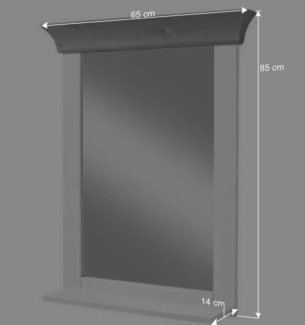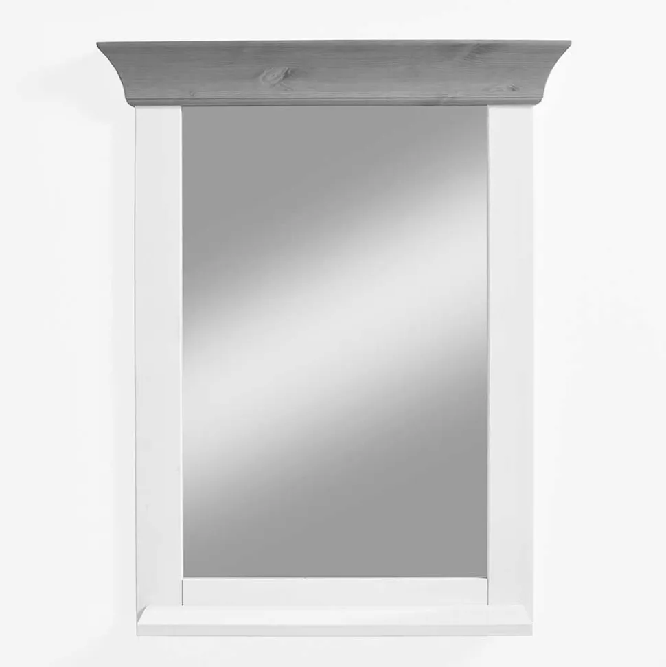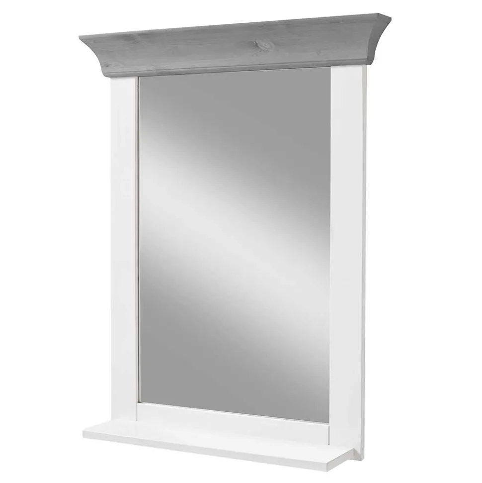 Der Bad-Spiegel „Mirandesca“ zeichnet sich durch seine elegante zweifarbige Optik aus. Die weiß lackierten Oberflächen in Kombination mit der grau lackierten Kranzleiste verleihen diesem Spiegel einen zeitlosen Charme, der perfekt in jedes Badezimmer passt. Die Lackierung schützt nicht nur das Holz, sondern betont auch seine natürliche Schönheit und sorgt dafür, dass Ihr Spiegel auch in Jahren noch genauso strahlend aussieht wie am ersten Tag.