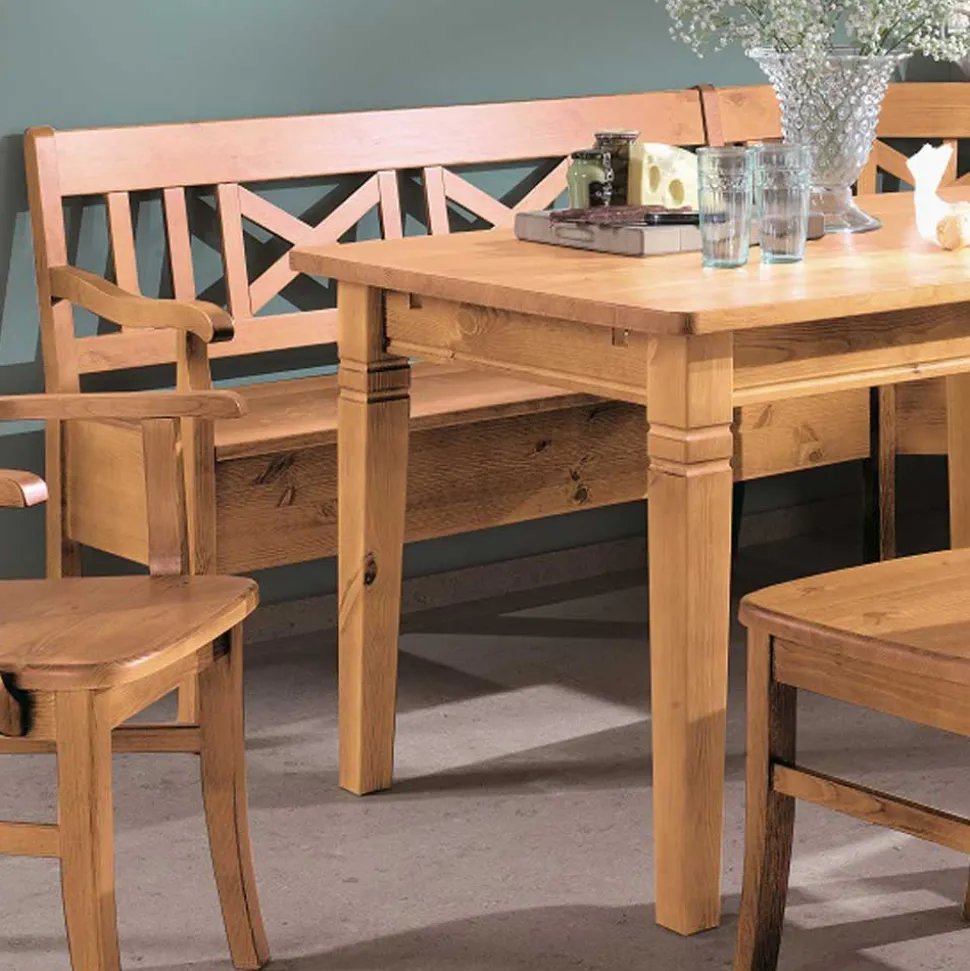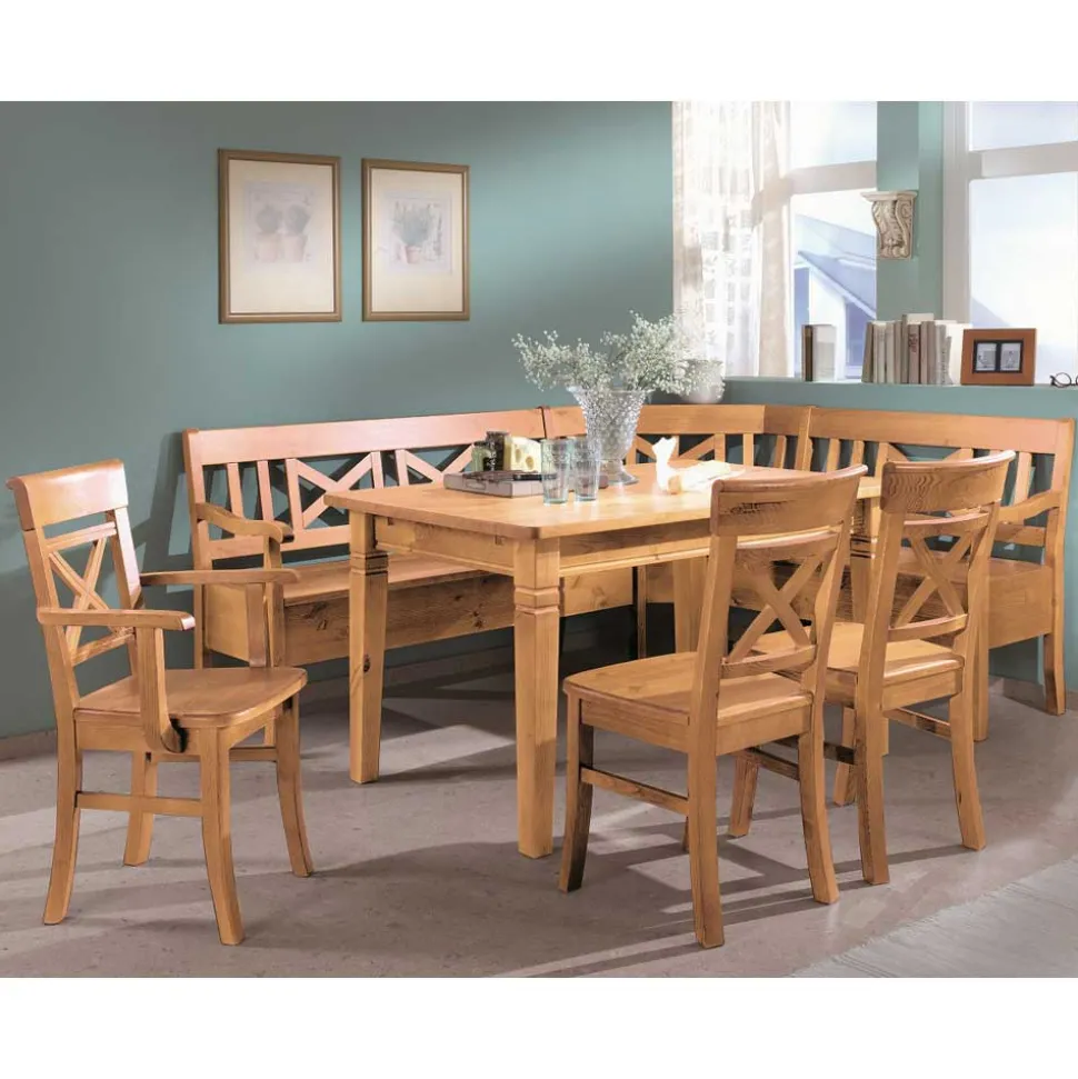 Stell dir vor, wie du mit Familie und Freunden in dieser Essecke zusammensitzt, die Wärme des Holzes spürst und den unverwechselbaren Charme des Landhausstils genießt. Die „Giurgia“-Eckbankgruppe vereint robustes Design mit detailverliebtem Handwerk und bringt dir das Gefühl eines gemütlichen Landhauses direkt in dein Zuhause. Dieser Stil steht für Natürlichkeit, Gemütlichkeit und eine gewisse rustikale Eleganz, die zum Verweilen und Wohlfühlen einlädt.