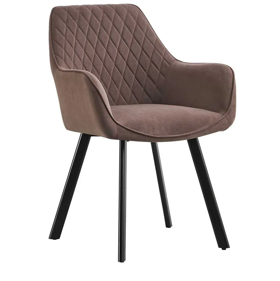 Leicht ausgestellte Armlehnen mit einer Höhe von 63 cm unterstützen eine entspannte Sitzhaltung – perfekt für ausgedehnte Abendessen oder gemütliche Runden mit Freunden. Die Stuhlmaße überzeugen mit einer Sitzhöhe von 46 cm, einer Sitzbreite von 41 cm sowie einer Sitztiefe von 42 cm – Maße, die ein bequemes, sicheres Sitzen ermöglichen. Für zusätzliche Stabilität sorgt das abgeschrägte Vierfußgestell aus pulverbeschichtetem Metall. Diese Formgebung macht die Stühle besonders standfest und verleiht ihnen zugleich eine moderne, dynamische Silhouette.