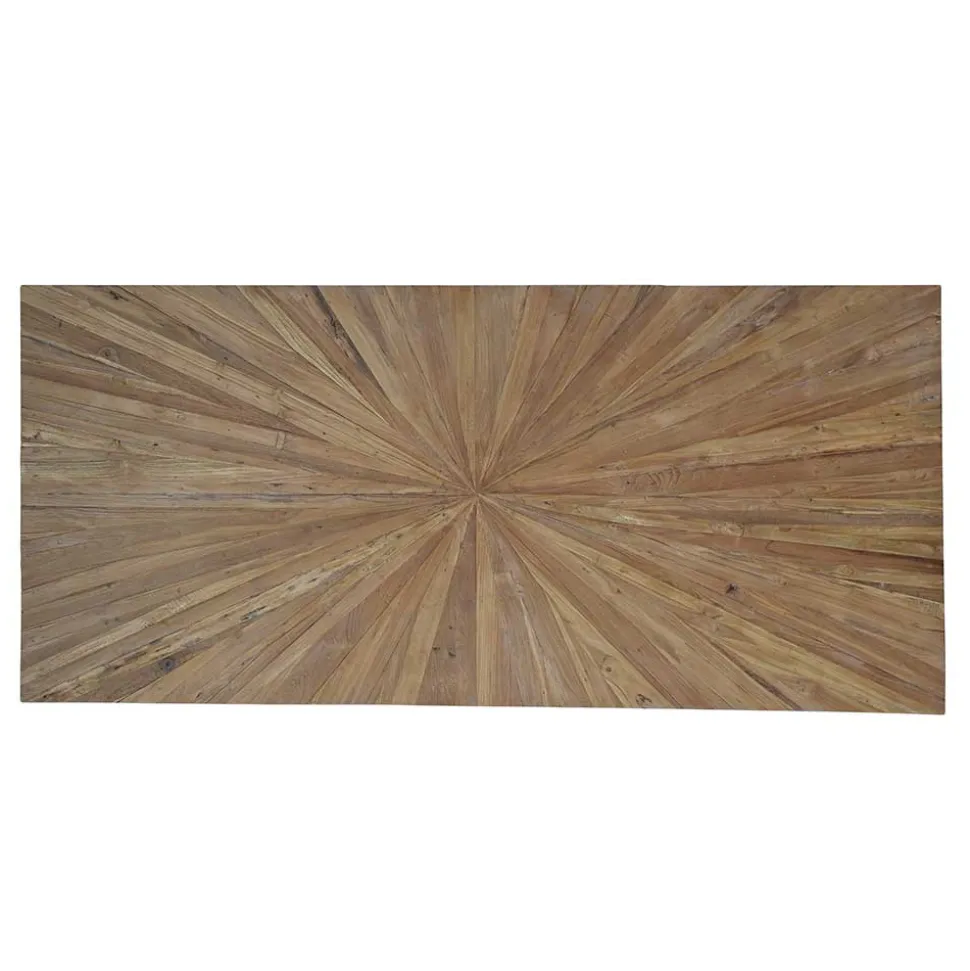 - Tischplattenstärke ca. 2,5 cm, am Rand aufgedoppelt auf ca. 5 cm, beeindruckende Einlegearbeit in Strahlenform