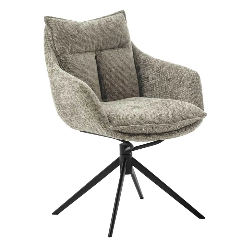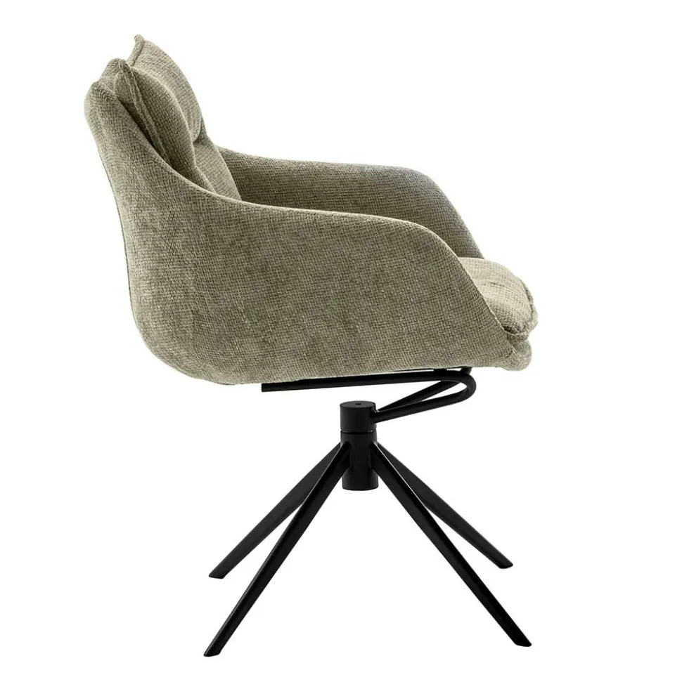 Das filigrane Gestell aus schwarz lackiertem Metall verleiht dem Stuhl einen modernen, minimalistischen Look. Doch nicht nur das Aussehen überzeugt – die leicht nach außen geneigten Armlehnen bieten zusätzlichen Komfort, während die eingebaute Wippfunktion für ein angenehmes Sitzgefühl sorgt, das sich deinem Körper anpasst. Dank der um 360 Grad drehbaren Sitzfläche mit Nivellierung kannst du dich jederzeit bequem in jede Richtung bewegen, was besonders im Büroalltag oder bei geselligen Runden praktisch ist. Trotz des filigranen Designs ist der Stuhl extrem stabil und bis zu 120 kg belastbar.