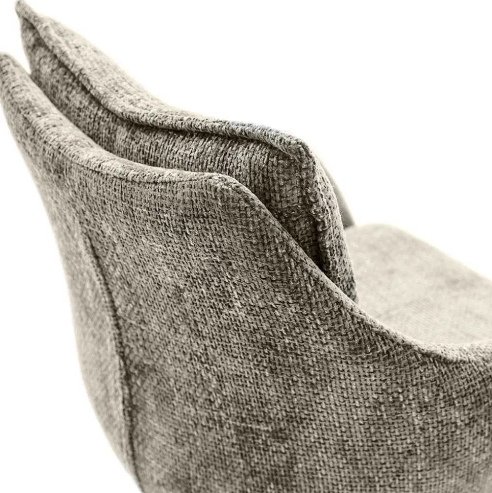 Das moderne Design des Drehstuhls „Combrit“ wird durch den taupefarbenen Strukturstoff aus 100 % Polyester unterstrichen. Dieser Stoff ist nicht nur besonders weich und angenehm im Griff, sondern auch pflegeleicht und langlebig. Die gemütliche Rückenlehne ist mit eleganten, linearen Steppnähten versehen, die dem Stuhl eine zusätzliche visuelle Raffinesse verleihen. Ein umlaufender Keder um die Sitz- und Rückenfläche sorgt für eine klare Linienführung und unterstreicht die hochwertige Verarbeitung.