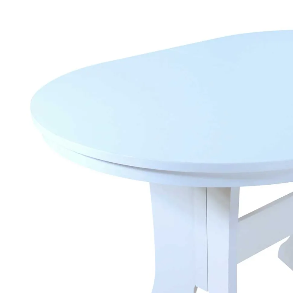 Massives Buchenholz sorgt bei den Gestellen von Tisch und Stühlen für Stabilität und Widerstandsfähigkeit. Die Oberflächen wurden weiß lackiert – ein mehrschichtiger Lackierprozess schützt das Holz, lässt es edel wirken und verleiht ihm eine dauerhaft glatte, gleichmäßige Oberfläche mit dezentem Glanz.