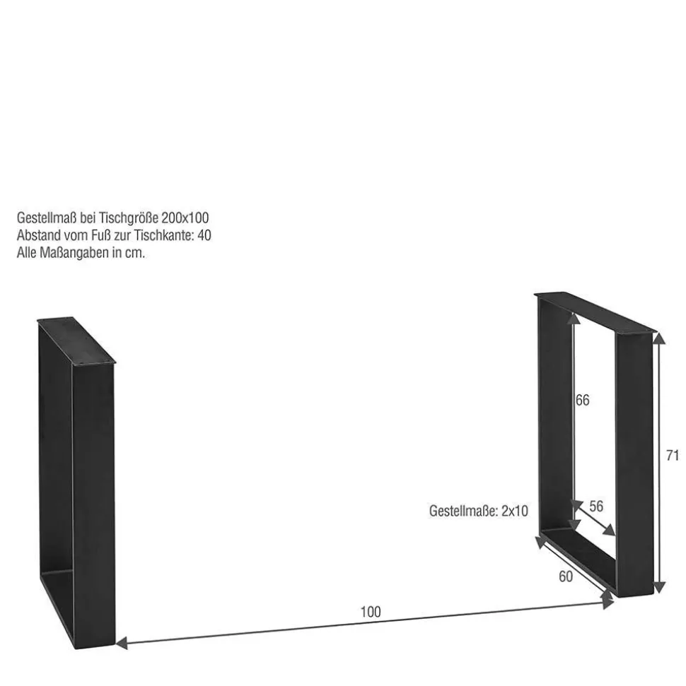 - Robustes, schwarz lackiertes Metall-Bügelgestell, Vierkantrohr (BxT): je ca. 10×2 cm stark