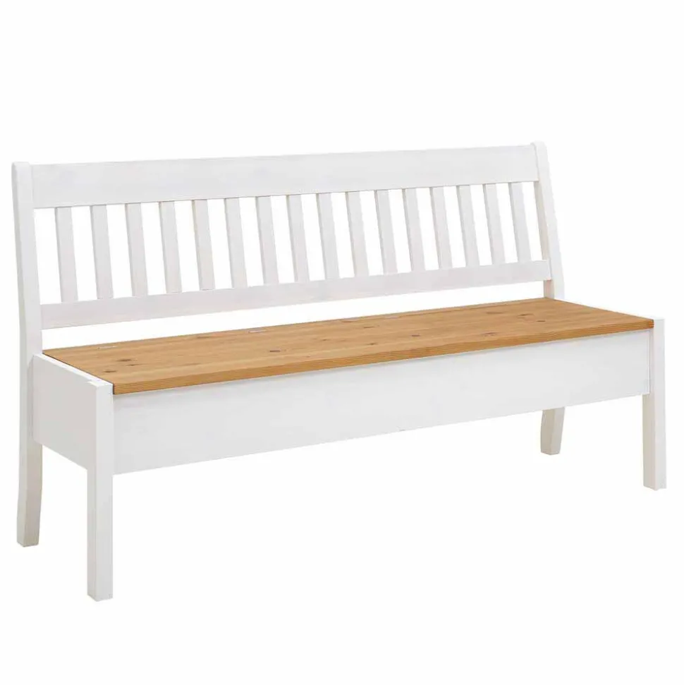 - Attraktive Sitzbank in Weiß und Kiefer Laugenfarben