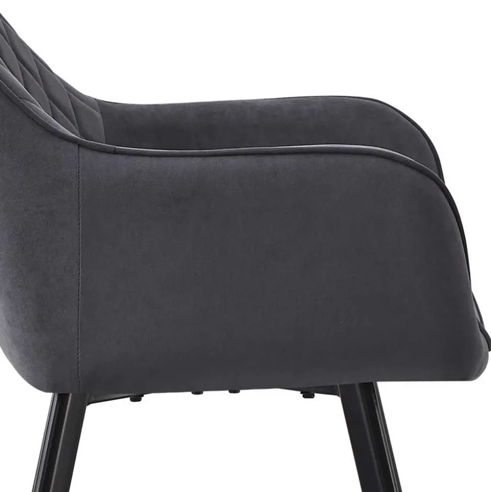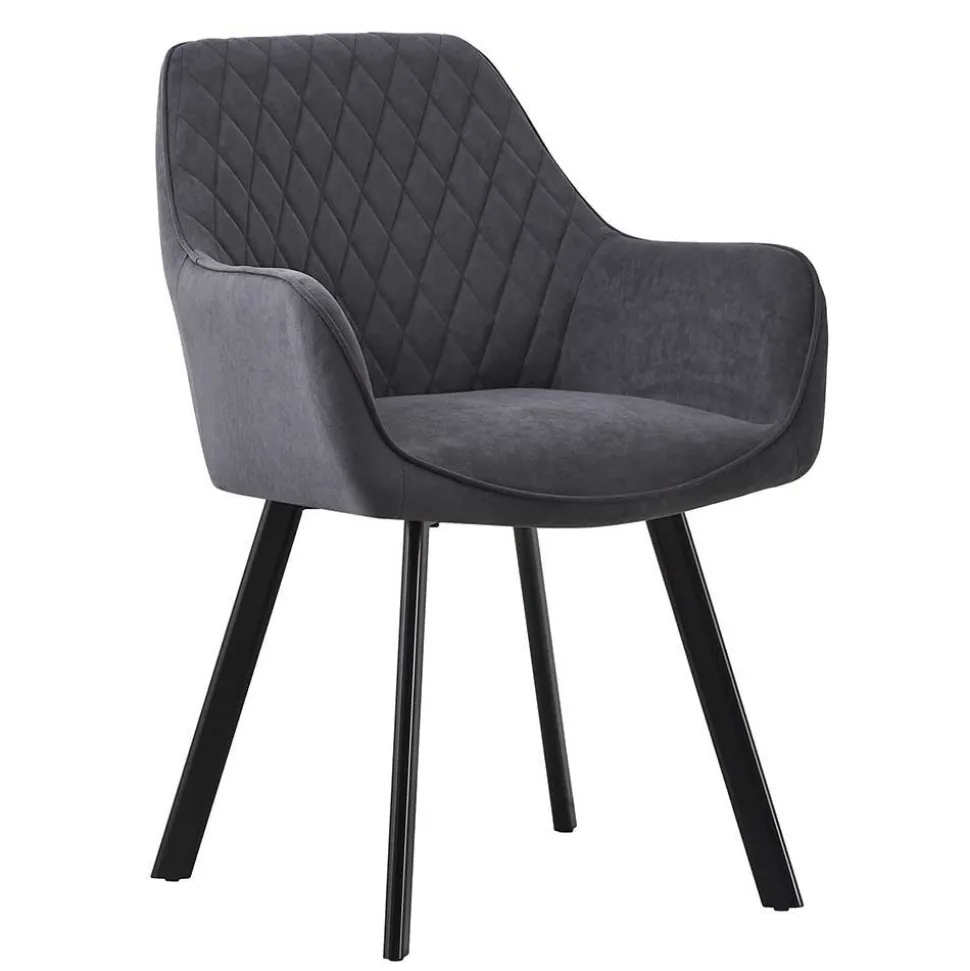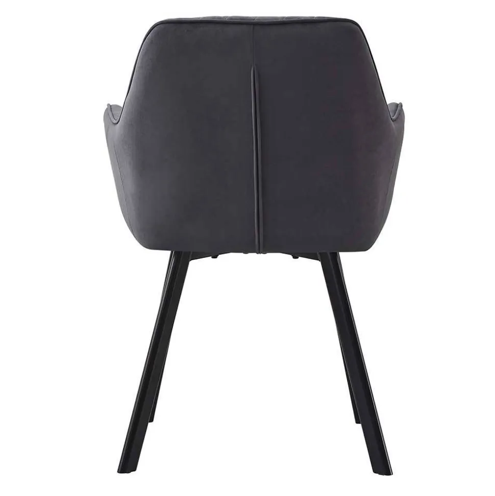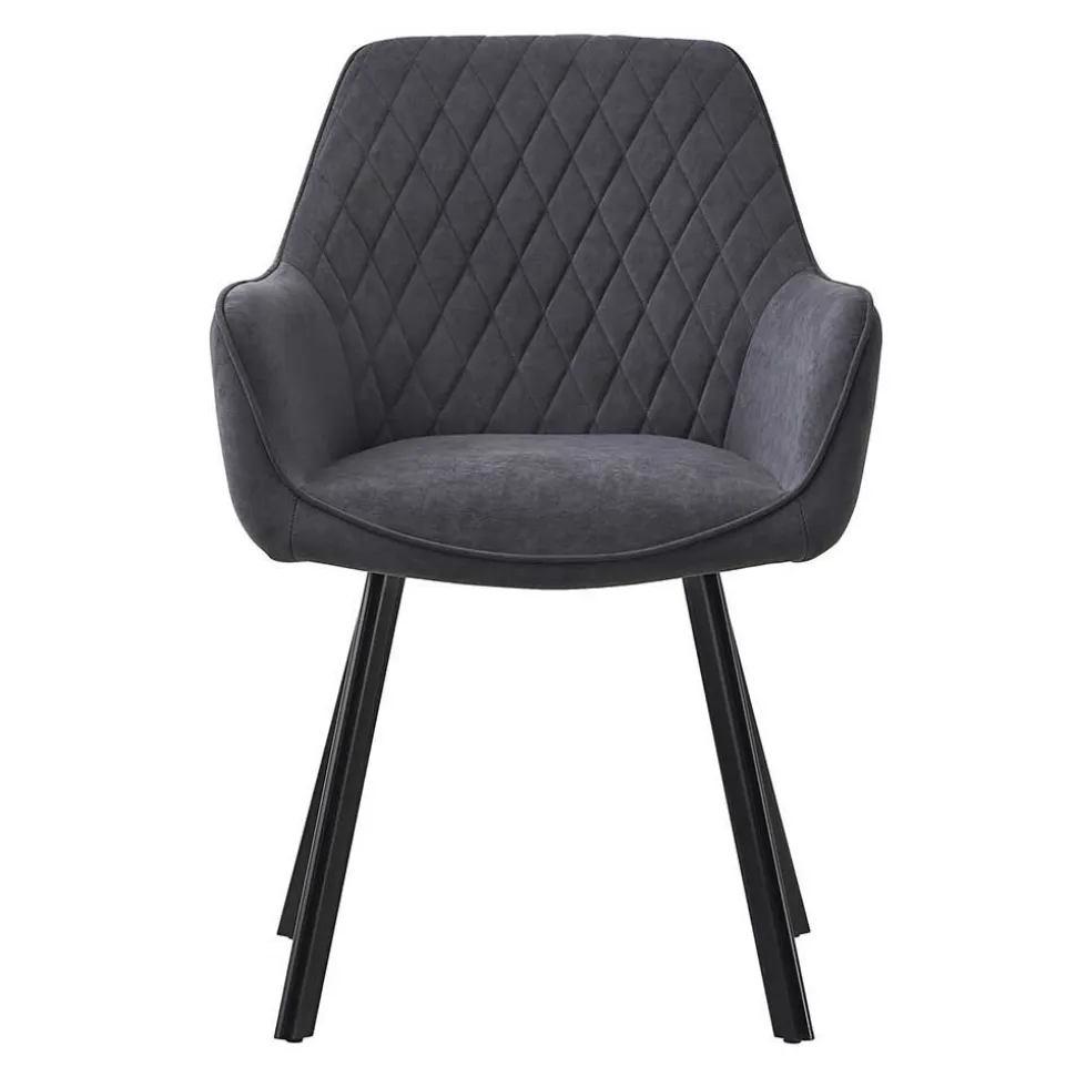 Die Rückenlehne mit attraktiver Rautensteppung misst 33,5 cm ab Sitzfläche und vereint stilvolles Design mit spürbarer Rückstütze. Leicht ausgestellte Armlehnen auf einer Höhe von 63 cm fördern eine entspannte Sitzhaltung und bieten gleichzeitig Halt und Komfort. Das abgeschrägte Vierfußgestell sorgt für außergewöhnliche Stabilität – selbst bei unebenem Boden. Jeder Stuhl ist bis zu 110 kg belastbar, was zusätzlich für die solide Qualität spricht.